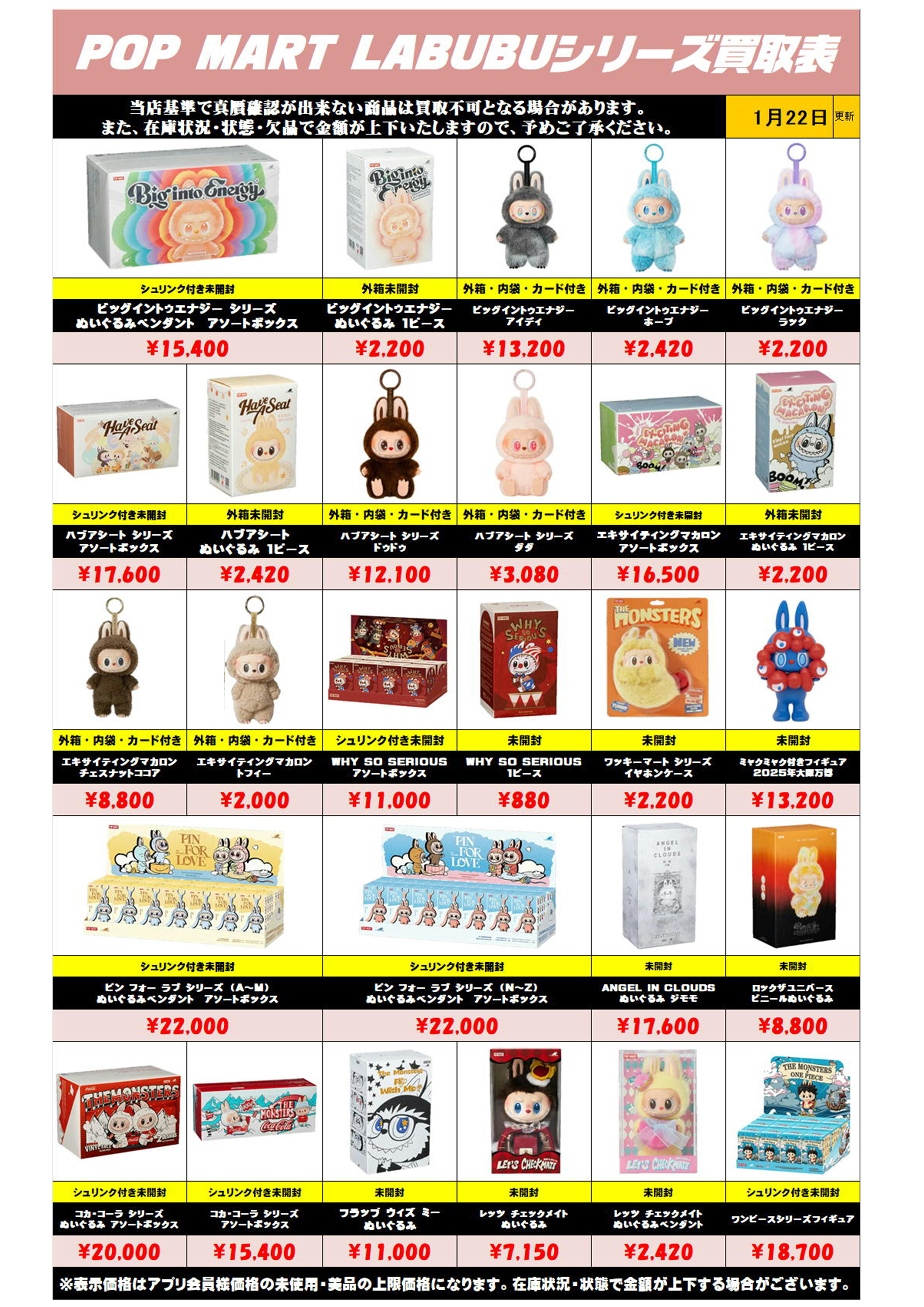 ラブブシリーズも超高額買取実施中です! 1/22~