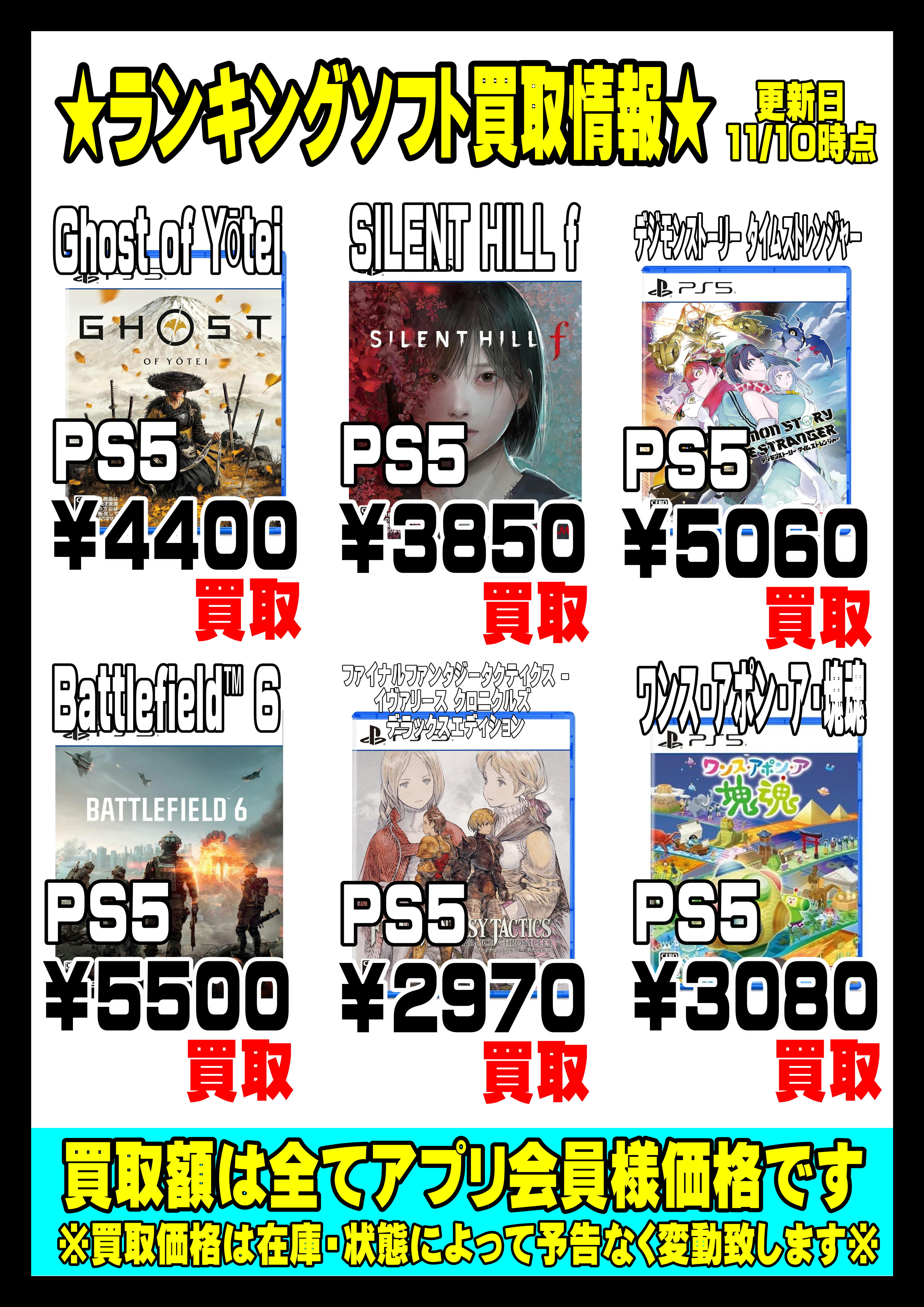 ★週間ゲームソフトランキングPS5強化買取情報!!!!!★11/10現在