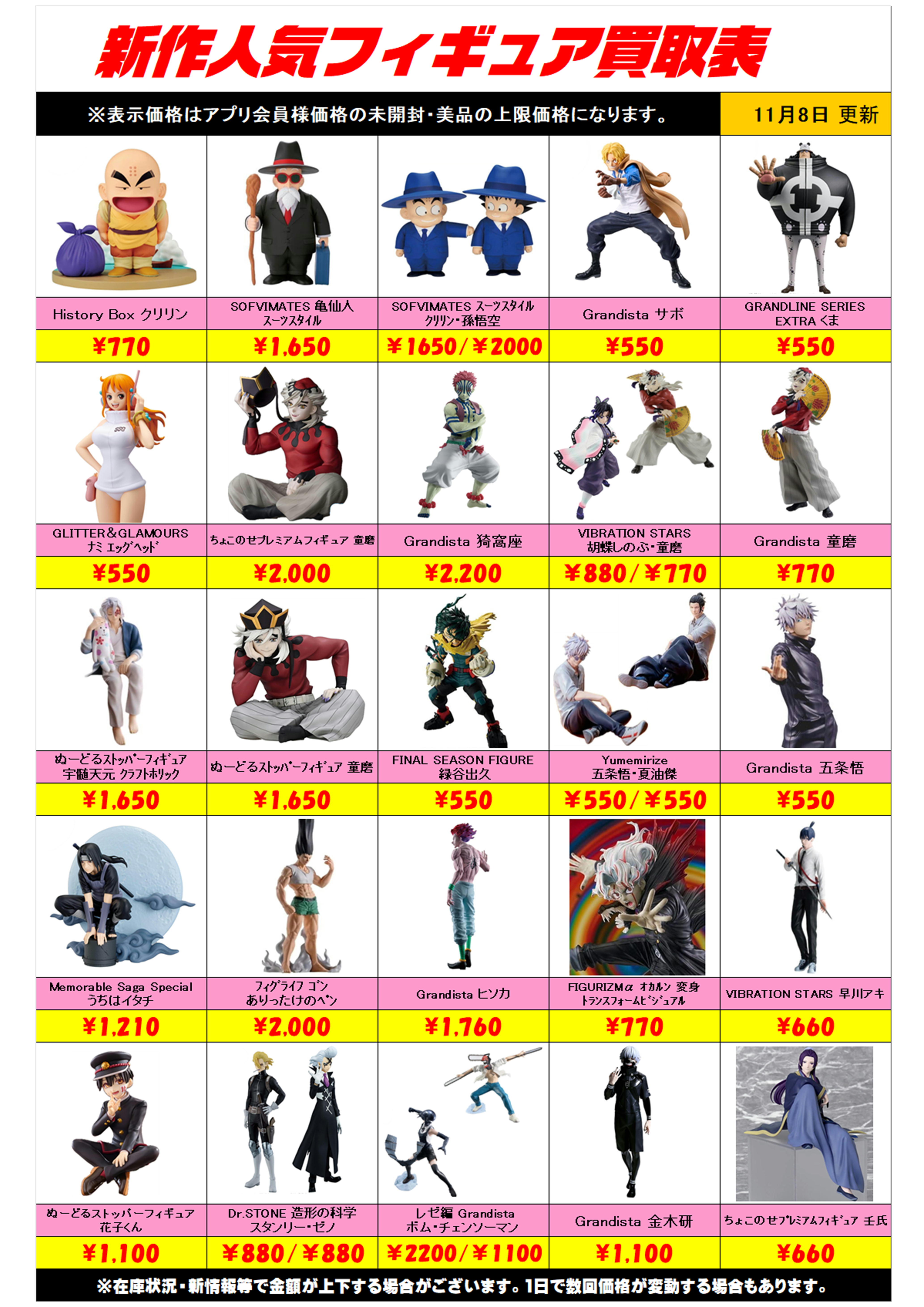新作プライズフィギュア買取リスト更新しました! 11/8~ プラスアップキャンペーンも実施中です!
