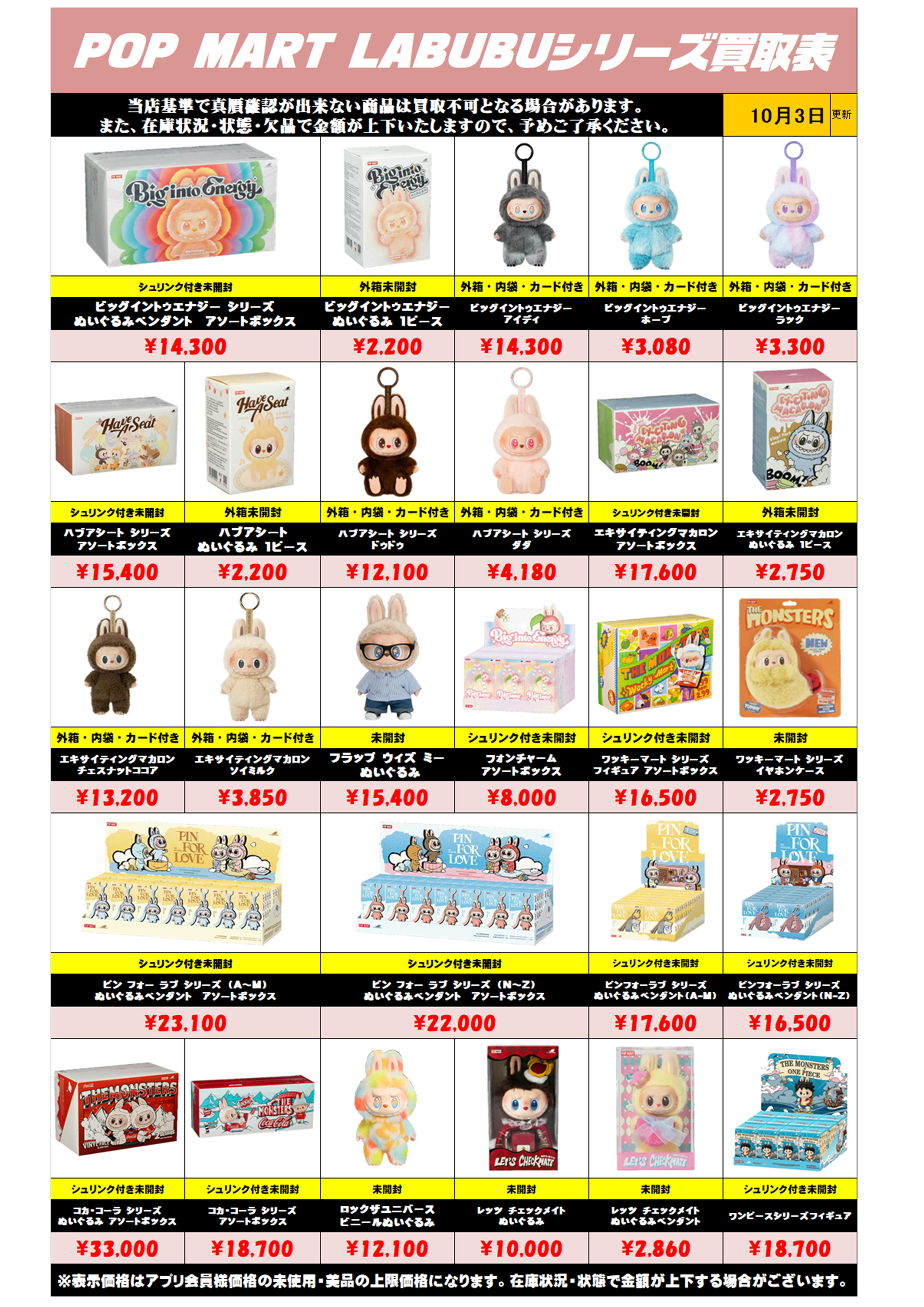 ※在庫・相場により予告なく金額が上下する場合がございます。
