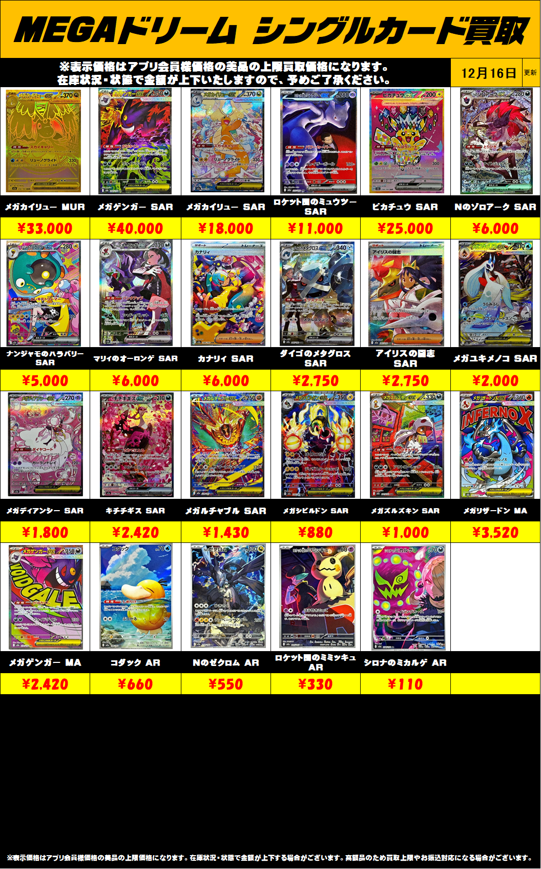 ポケモンカード新弾MEGAドリーム シングルカード更新しました! 12/16~