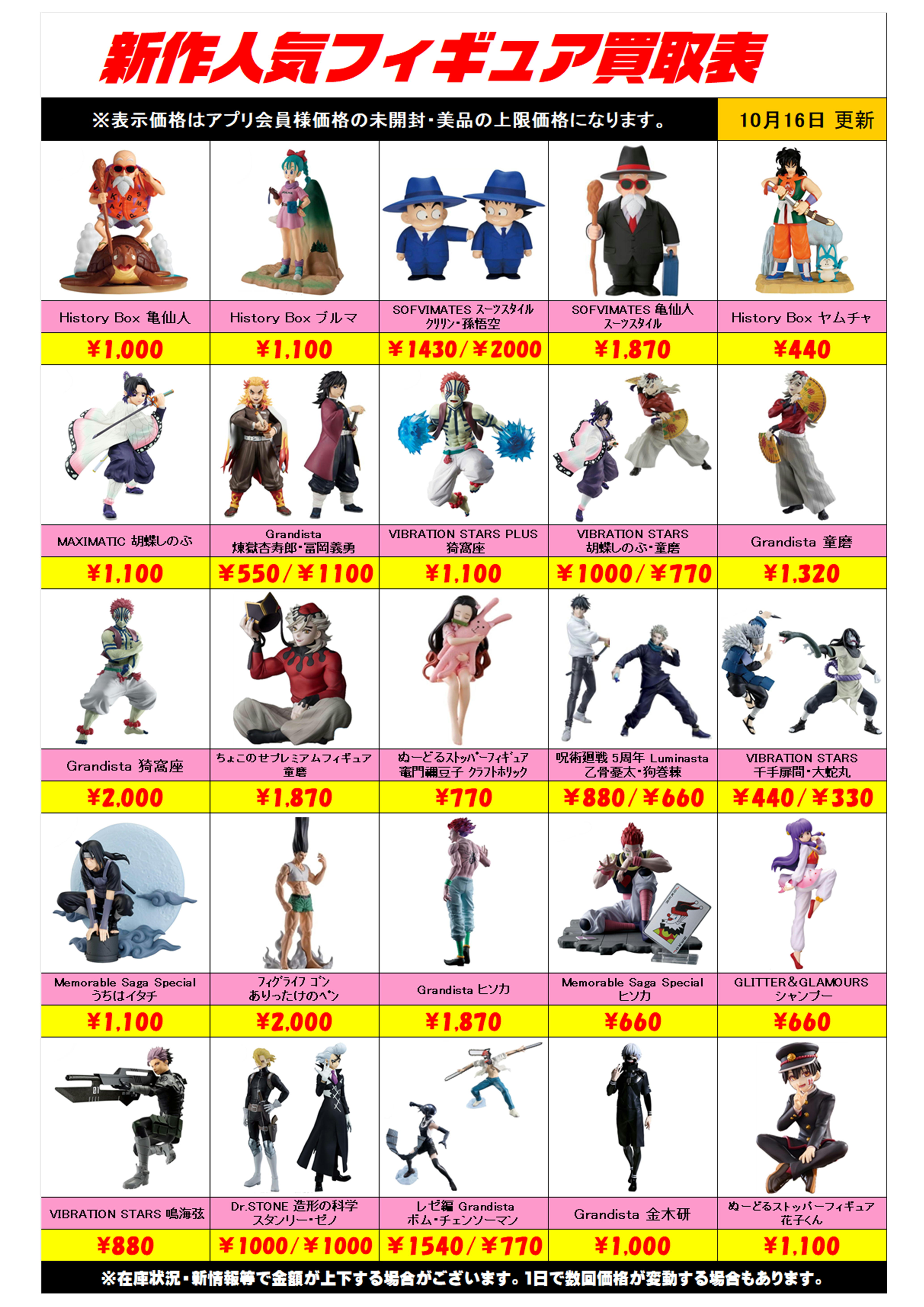 新作プライズフィギュア買取リスト更新しました! 10/16~ プラスアップキャンペーンも実施中です!