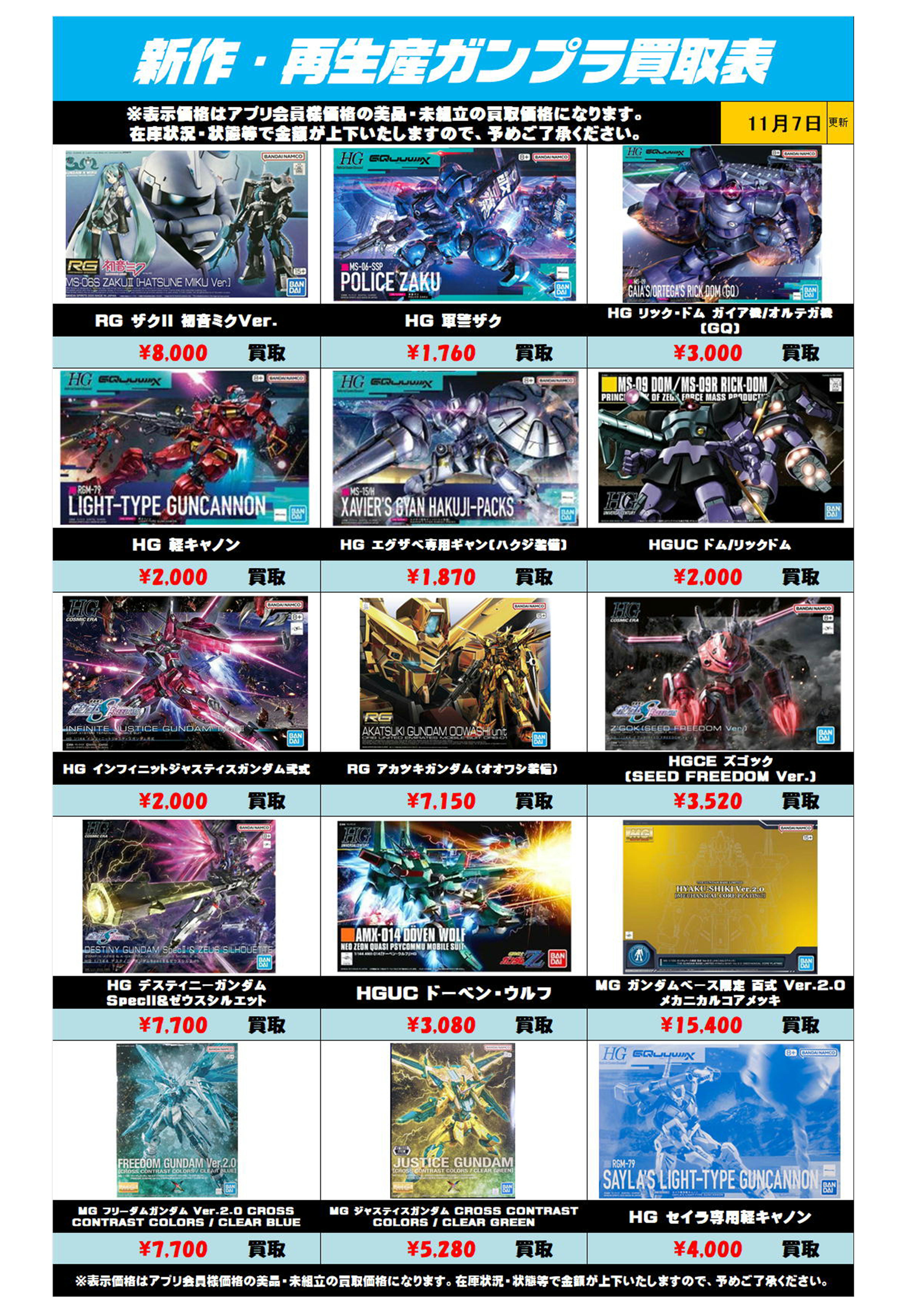 新作・再販ガンプラ買取リスト更新しました! 11/7~ プラスアップキャンペーンも実施中です!