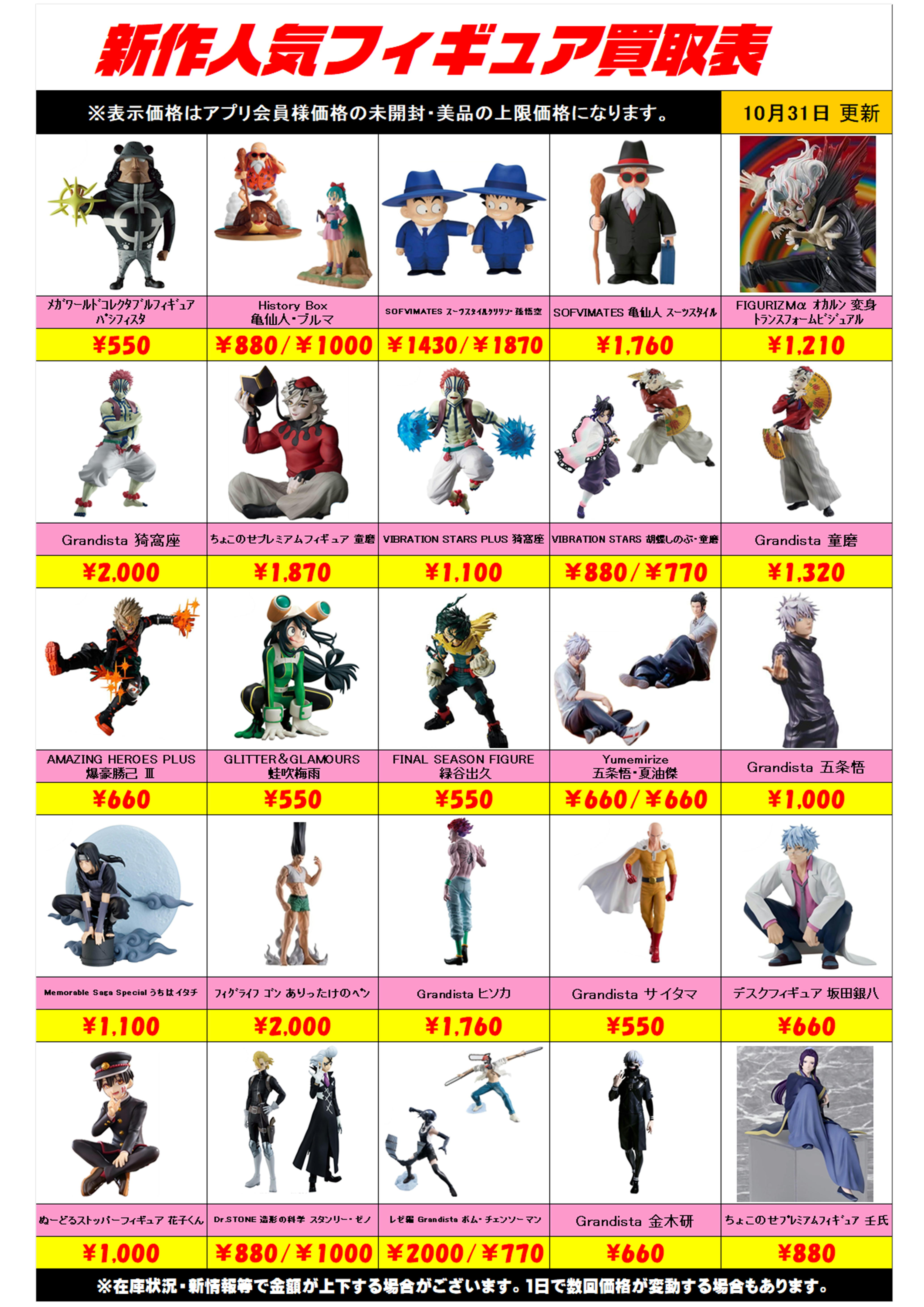 新作プライズフィギュア買取リスト更新しました! 10/31~ プラスアップキャンペーンも実施中です!