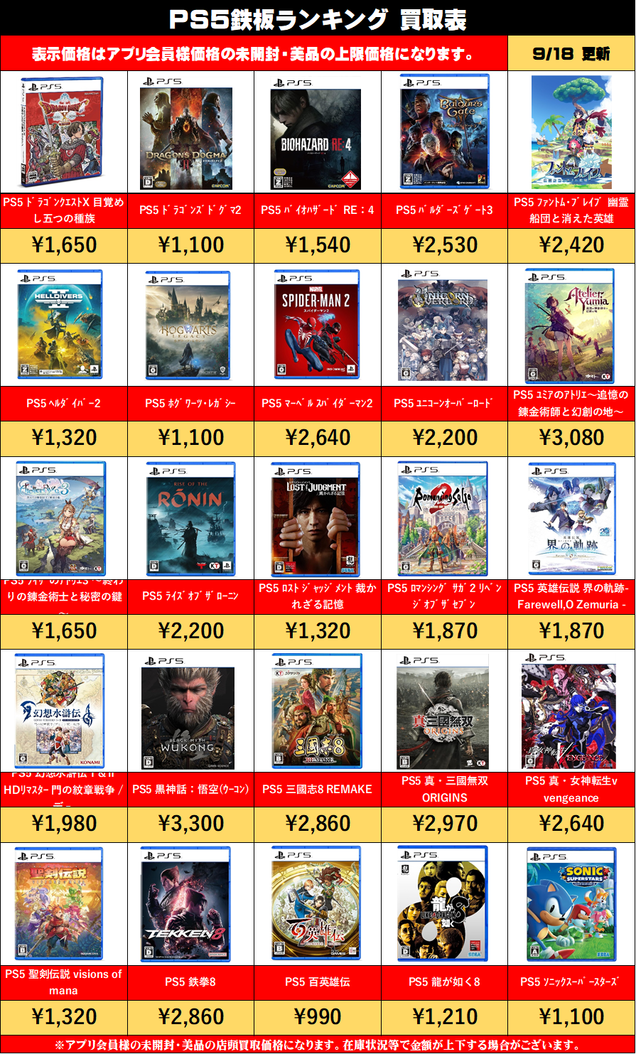 ★週間ゲームソフトランキングPS5強化買取情報!!!!!★1/21現在