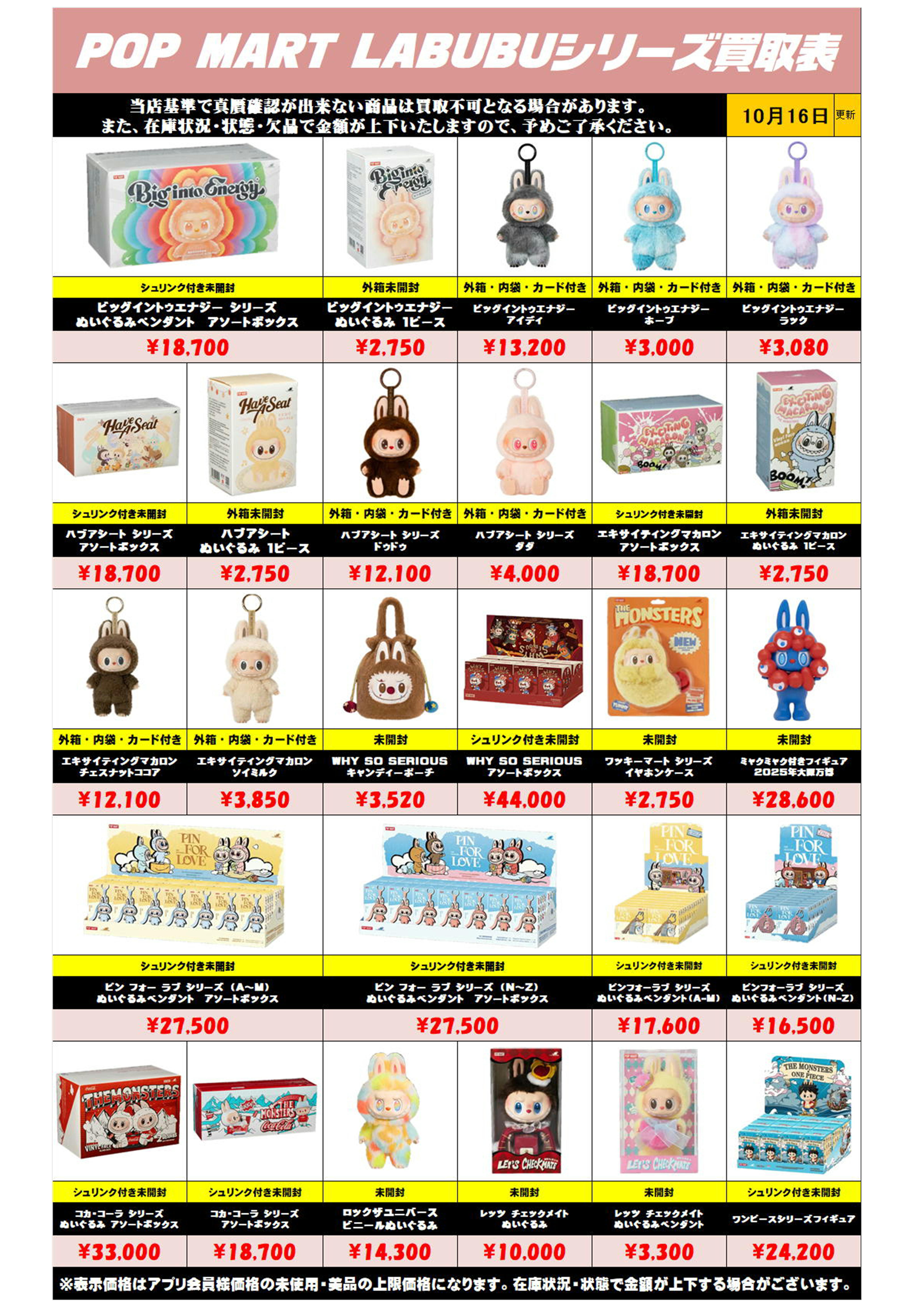 また、在庫状況・状態・欠品などでの金額が変動や、買取上限がございます。予めご了承ください。