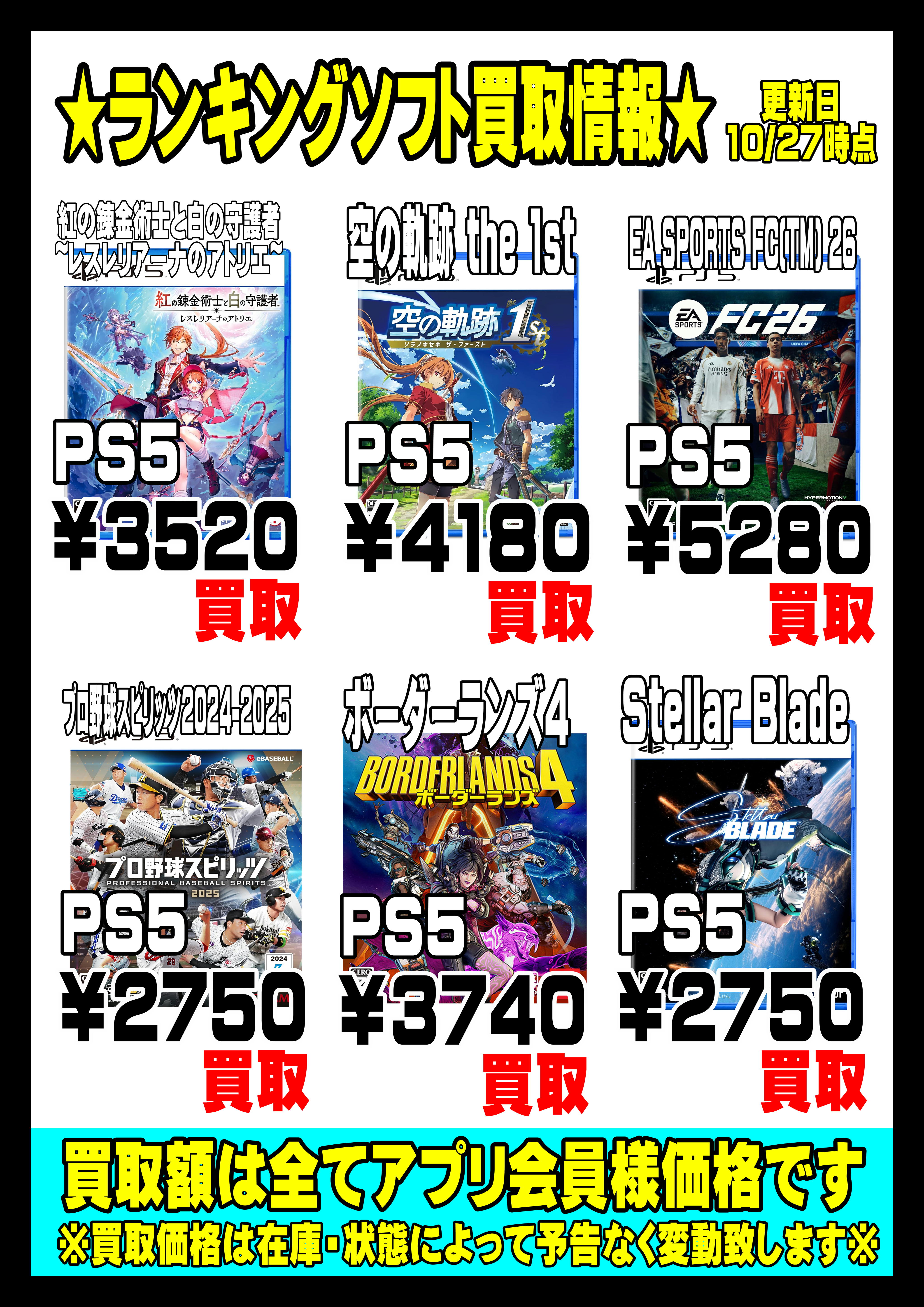 | ソフト名 | 会員買取価格 |