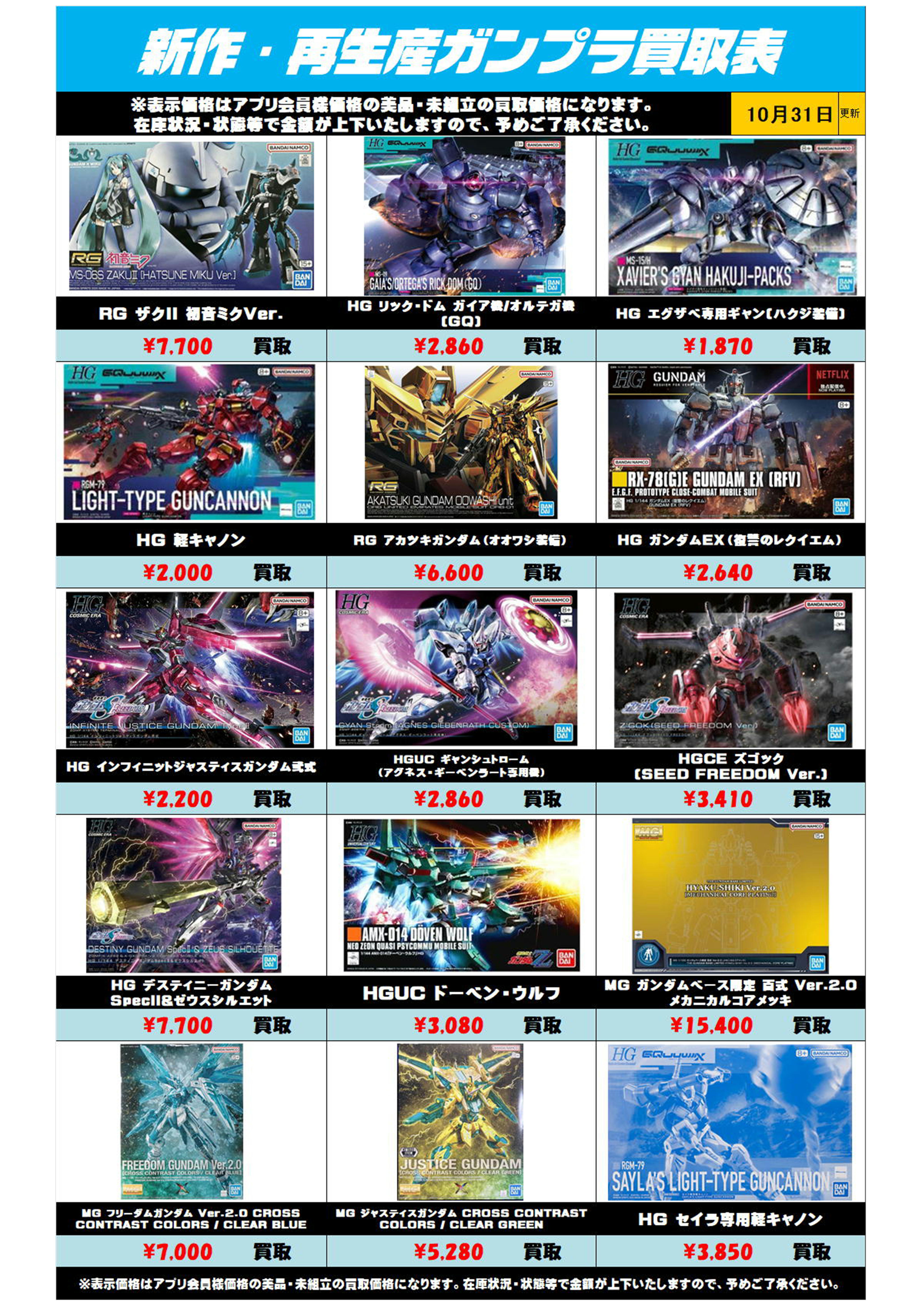 | 新作・再販ガンプラ買取表 | 買取金額 |