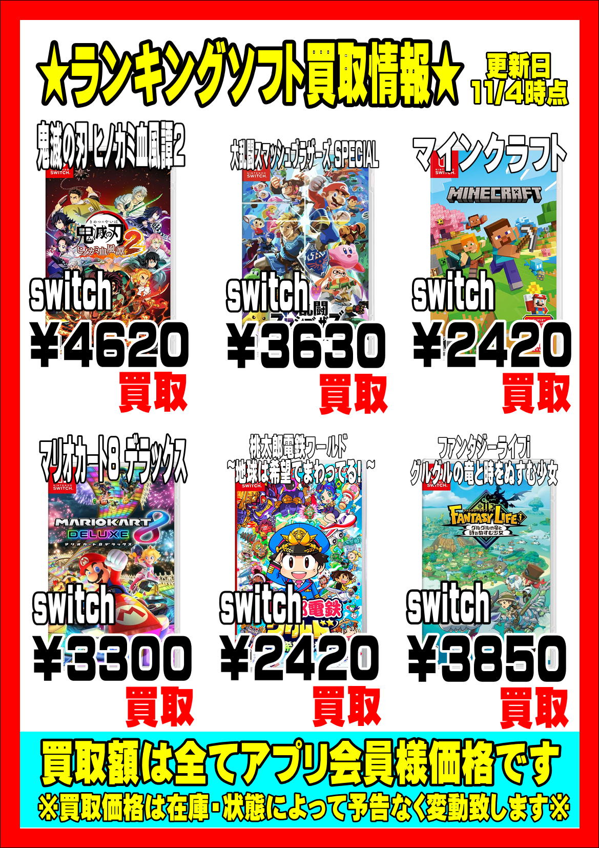| ソフト名 | 会員買取価格 |