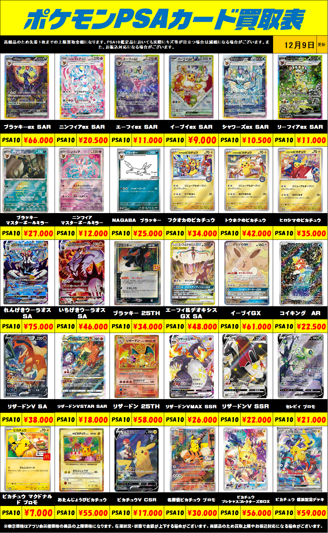 ※表示価格はアプリ会員様・店頭買取の美品の上限価格になります。 相場の変動が激しい為、在庫状況・状態・相場等で金額が予告なく大きく変動する場合がございます。PSAは、おひとり様最大で1日20万円までのお買取りになります。