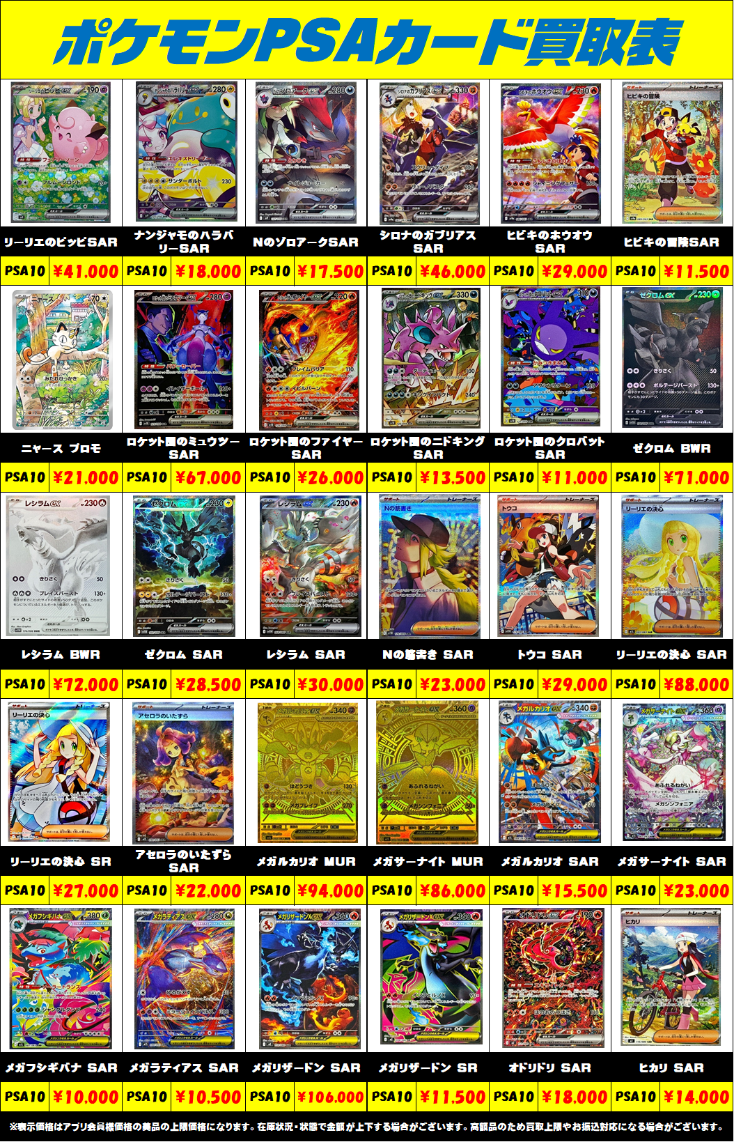 ※表示価格はアプリ会員様・店頭買取の美品の上限価格になります。 相場の変動が激しい為、在庫状況・状態・相場等で金額が予告なく大きく変動する場合がございます。PSAは、おひとり様最大で1日20万円までのお買取りになります。
