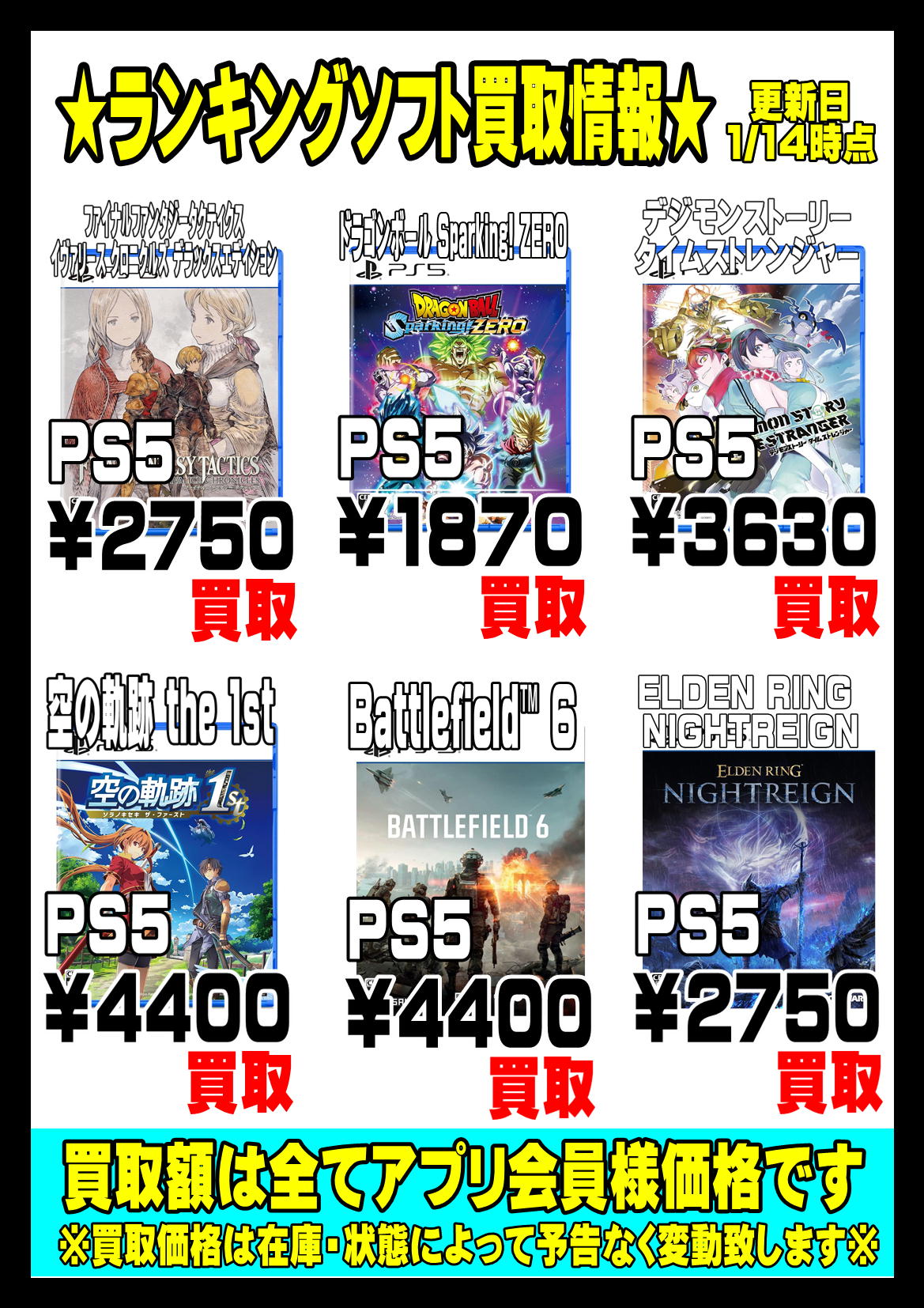 | ソフト名 | 会員買取価格 |