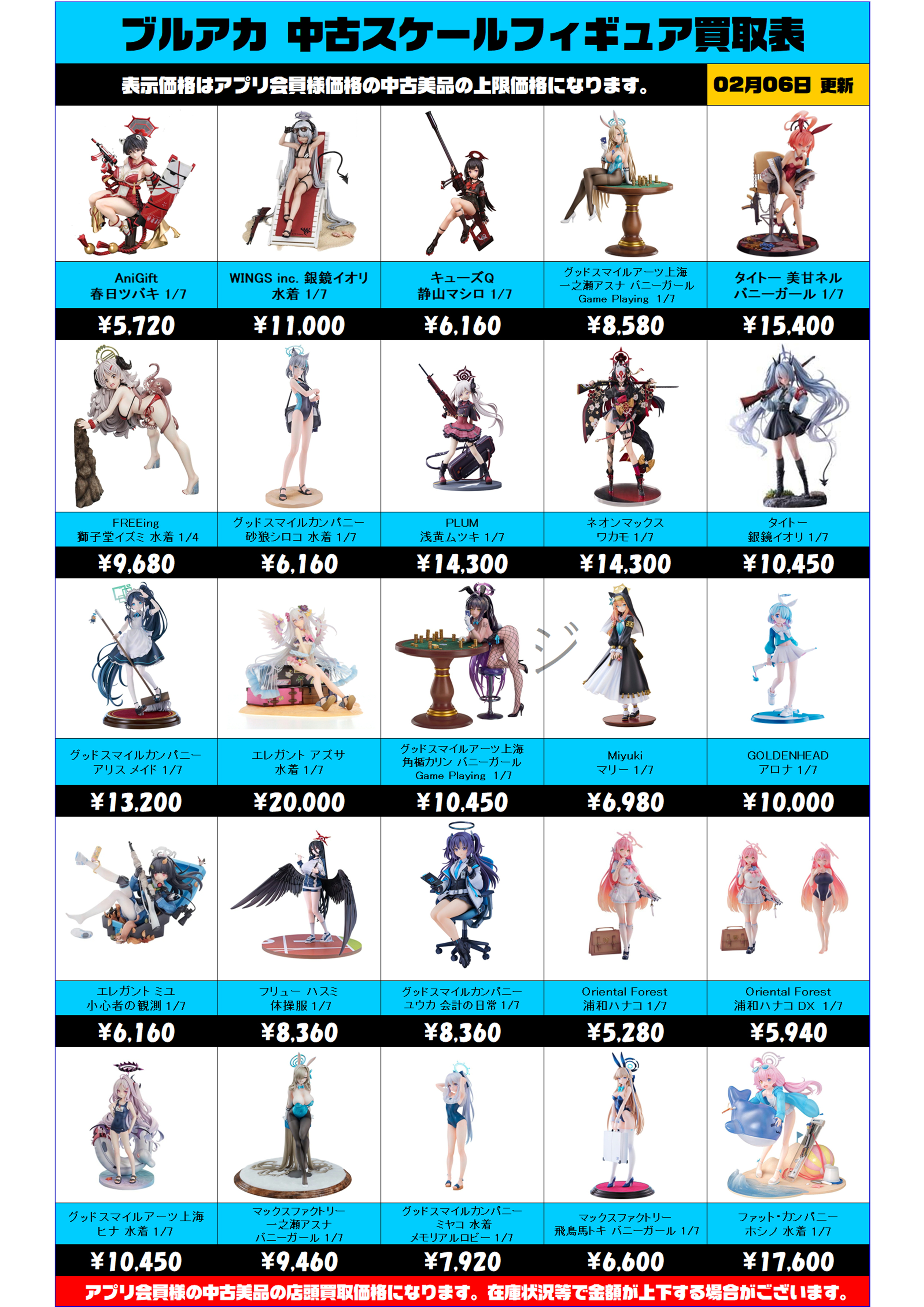 ブルーアーカイブ 中古スケールフィギュア買取表 更新しました! 2/6~