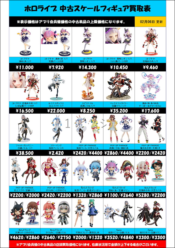ホロライブ 中古スケールフィギュア買取表 更新しました! 2/6~