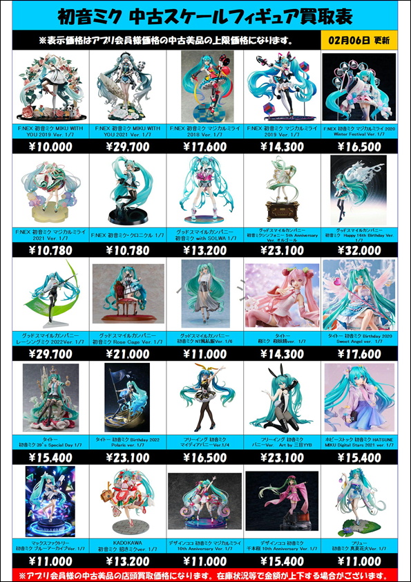 初音ミク 中古スケールフィギュア買取表 更新しました! 2/6~