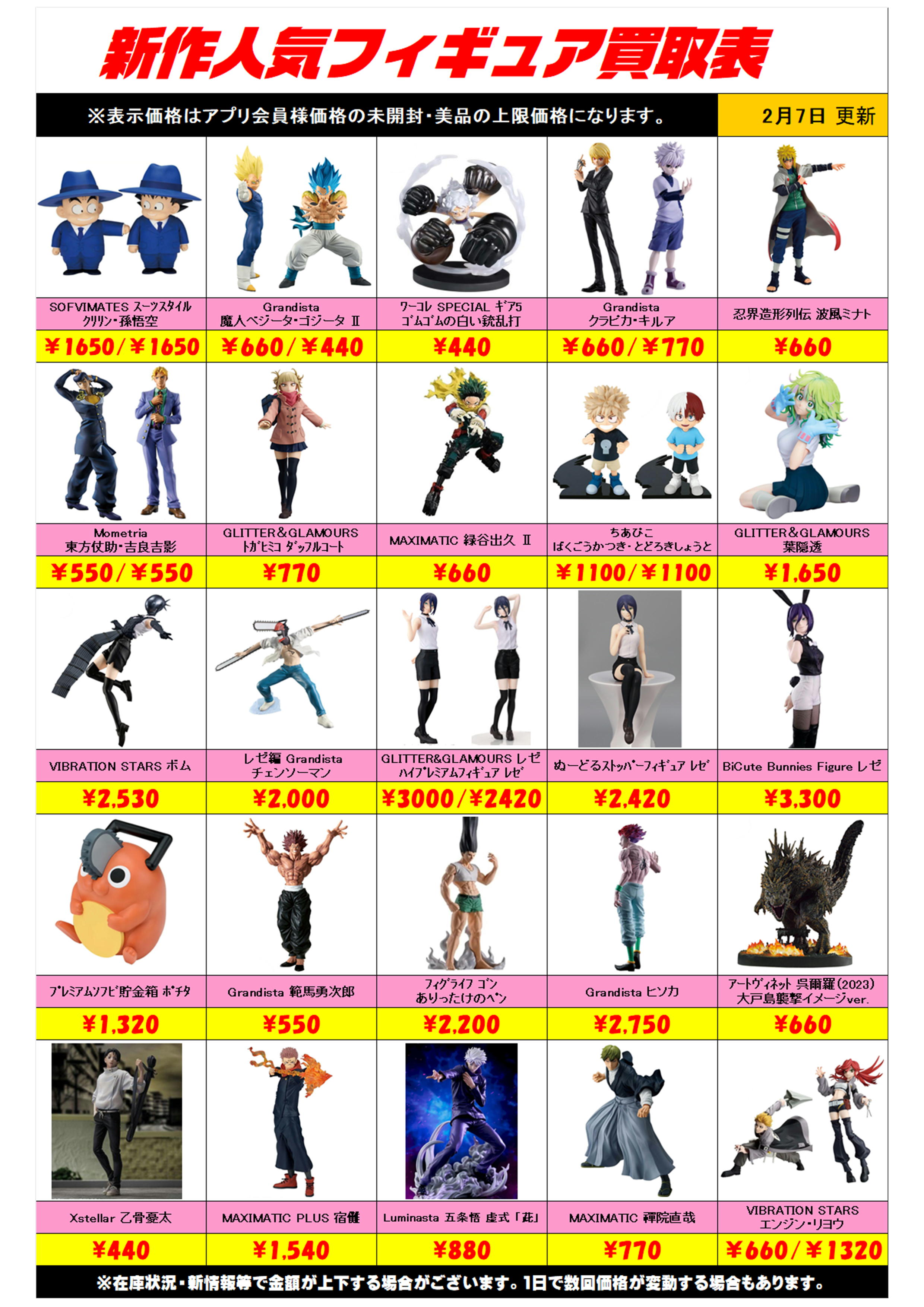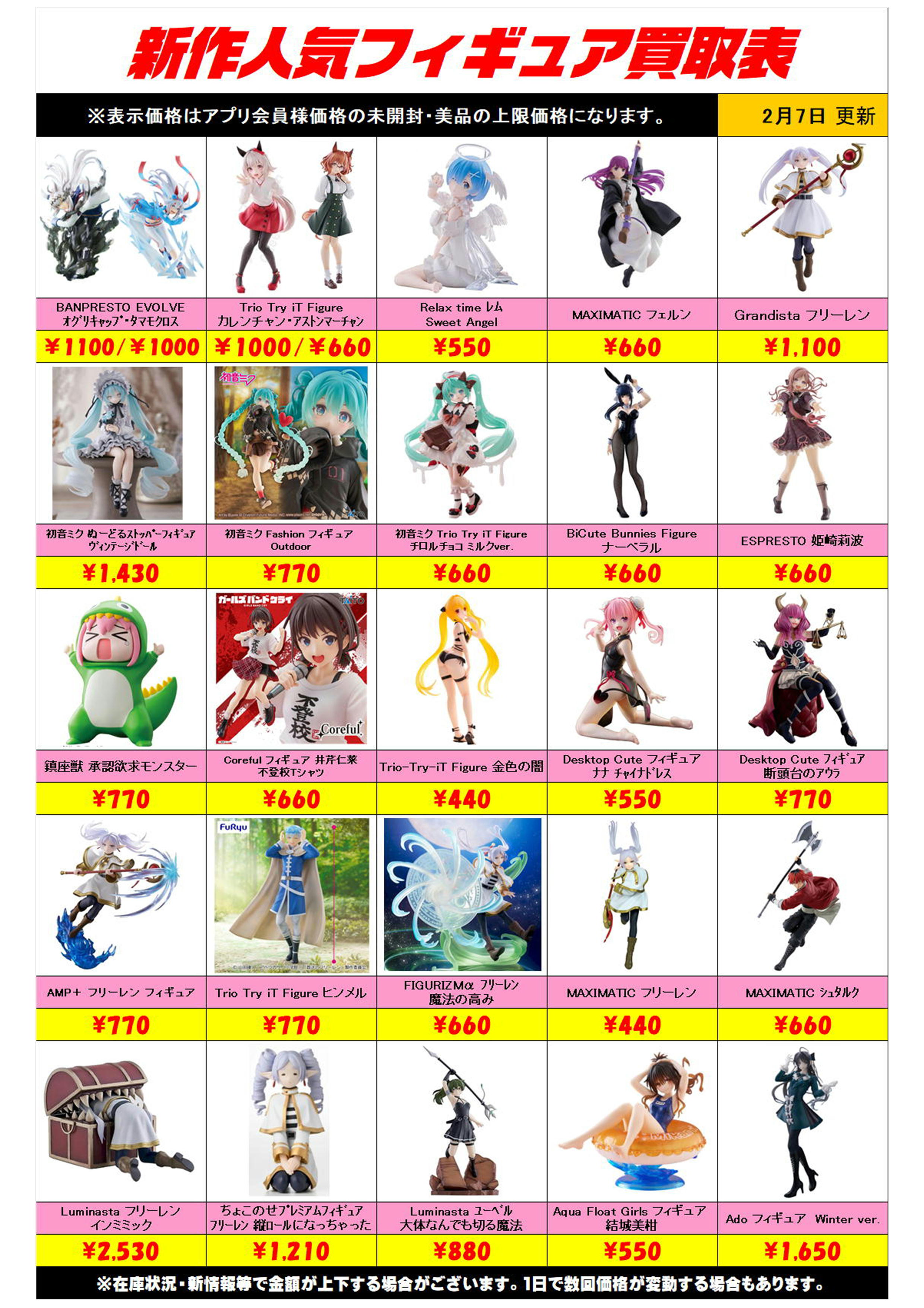 新作プライズフィギュア買取リスト更新しました! 2/7~ プラスアップキャンペーンも実施中です!
