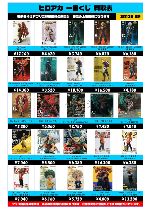 | 一番くじ 僕のヒーローアカデミア 開催文化祭!! A賞 緑谷出久 | 3300 |