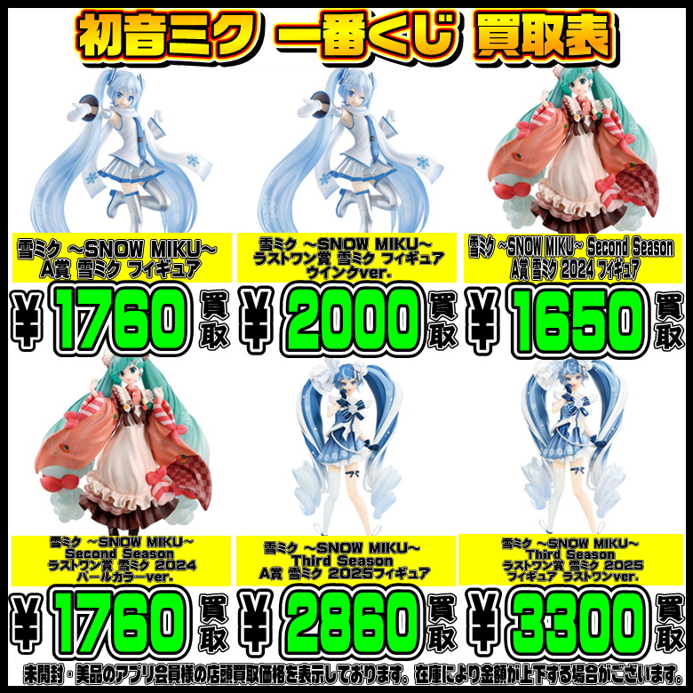 | 一番くじ 雪ミク ~SNOW MIKU~ Third Season ラストワン賞 ラストワンver. 雪ミク~2025~フィギュア | 3300 |