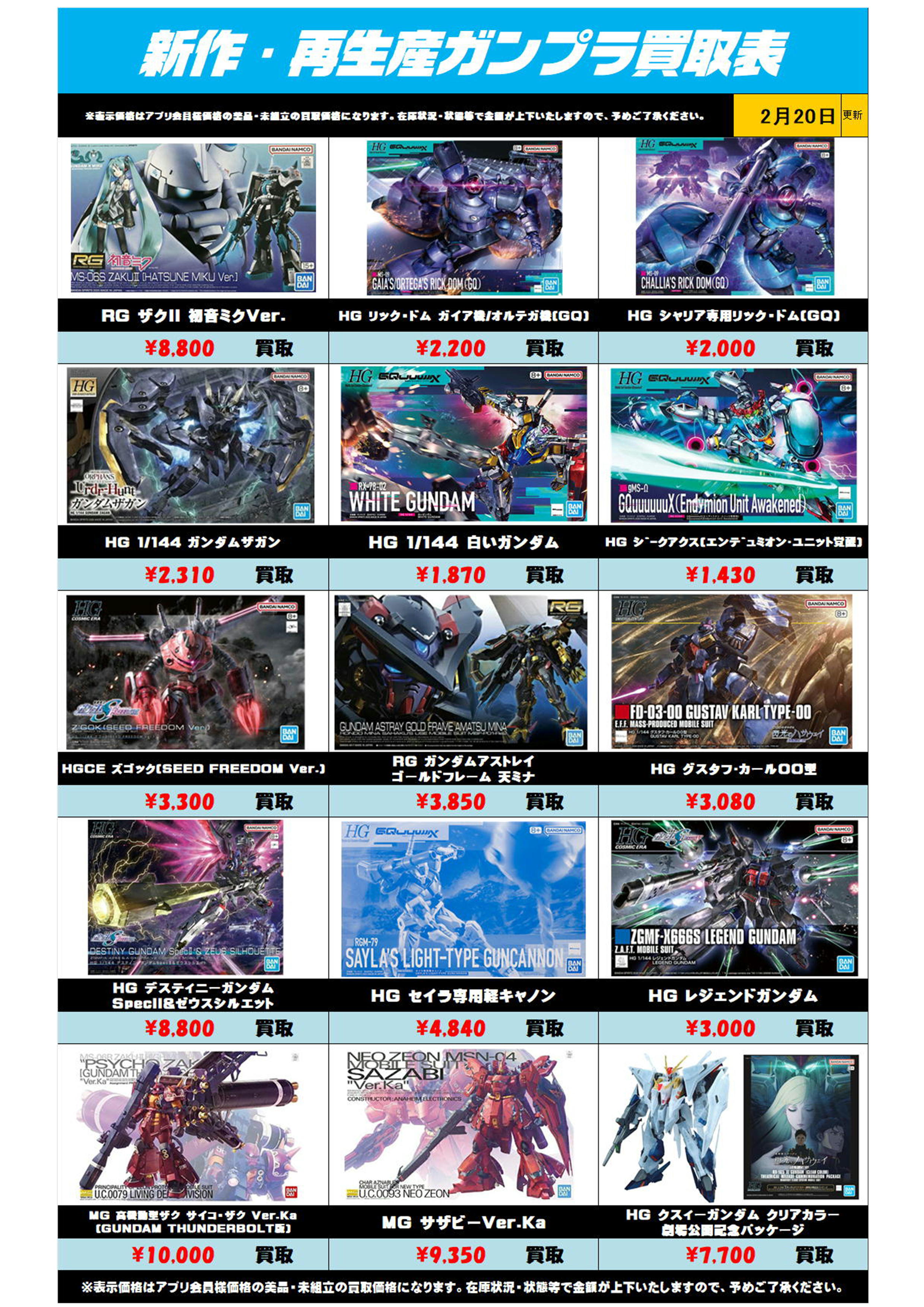| 新作・再販ガンプラ買取表 | 買取金額 |