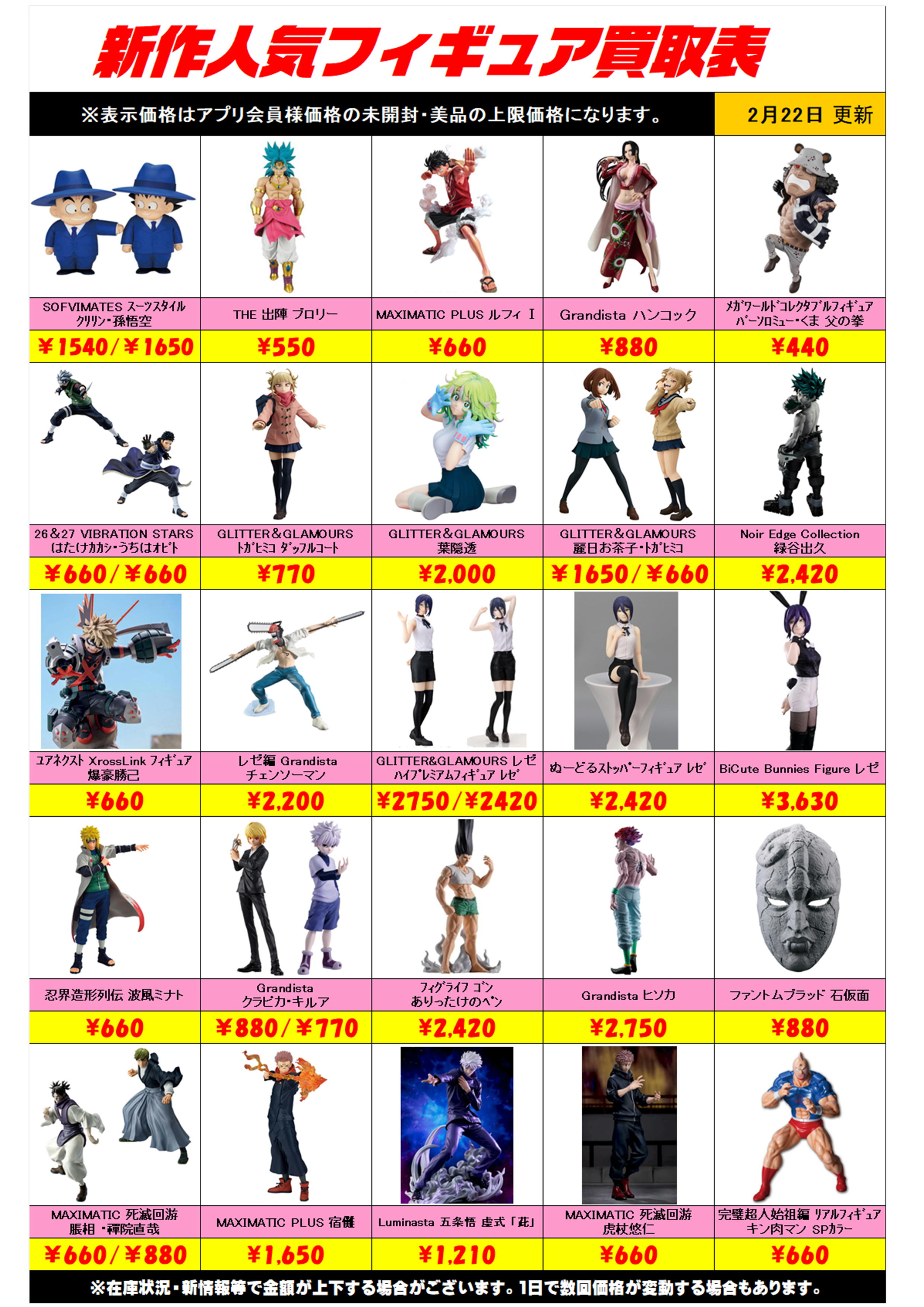 新作プライズフィギュア買取リスト更新しました! 2/22~ プラスアップキャンペーンも実施中です!