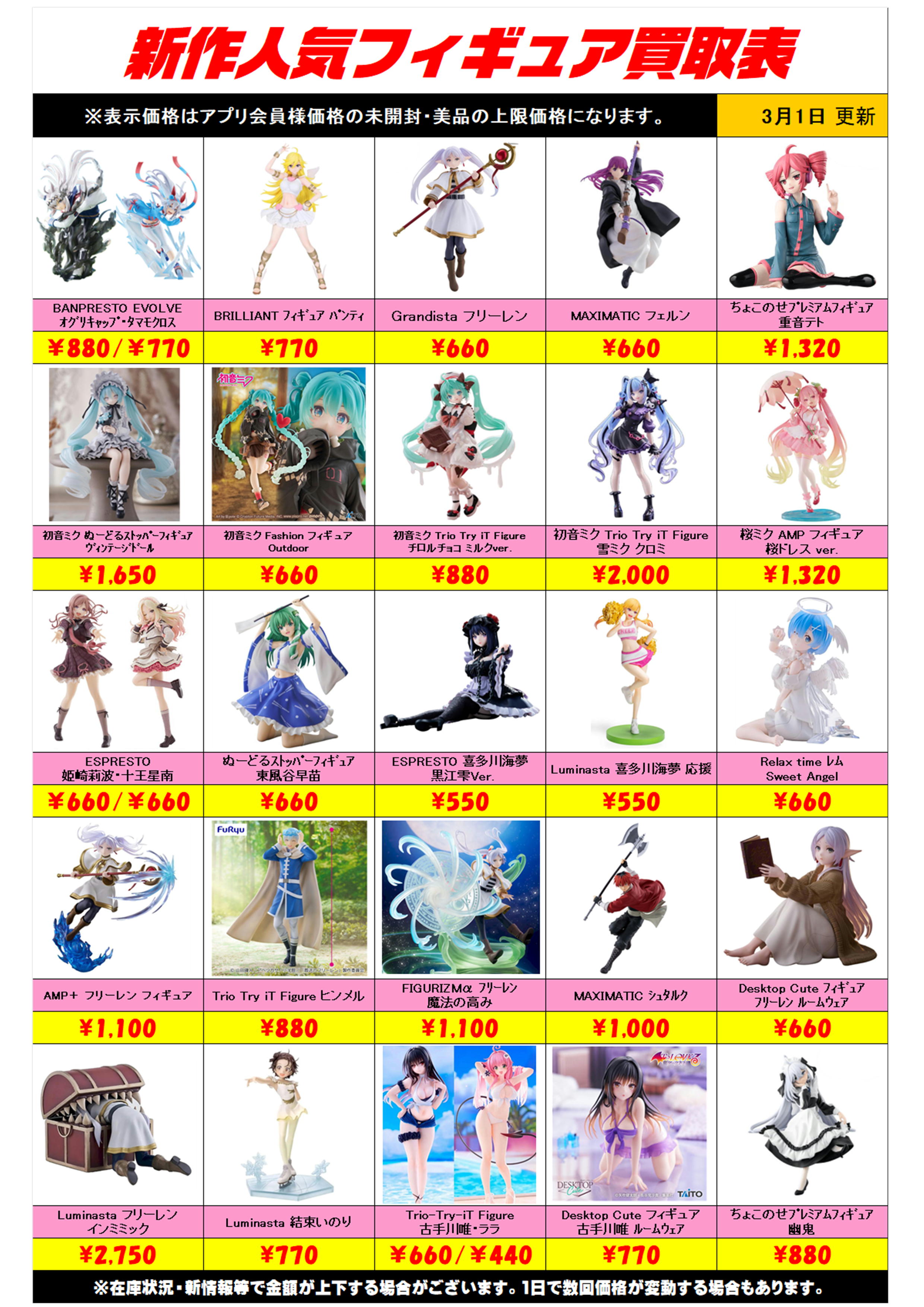 新作プライズフィギュア買取リスト更新しました! 3/1~ プラスアップキャンペーンも実施中です!