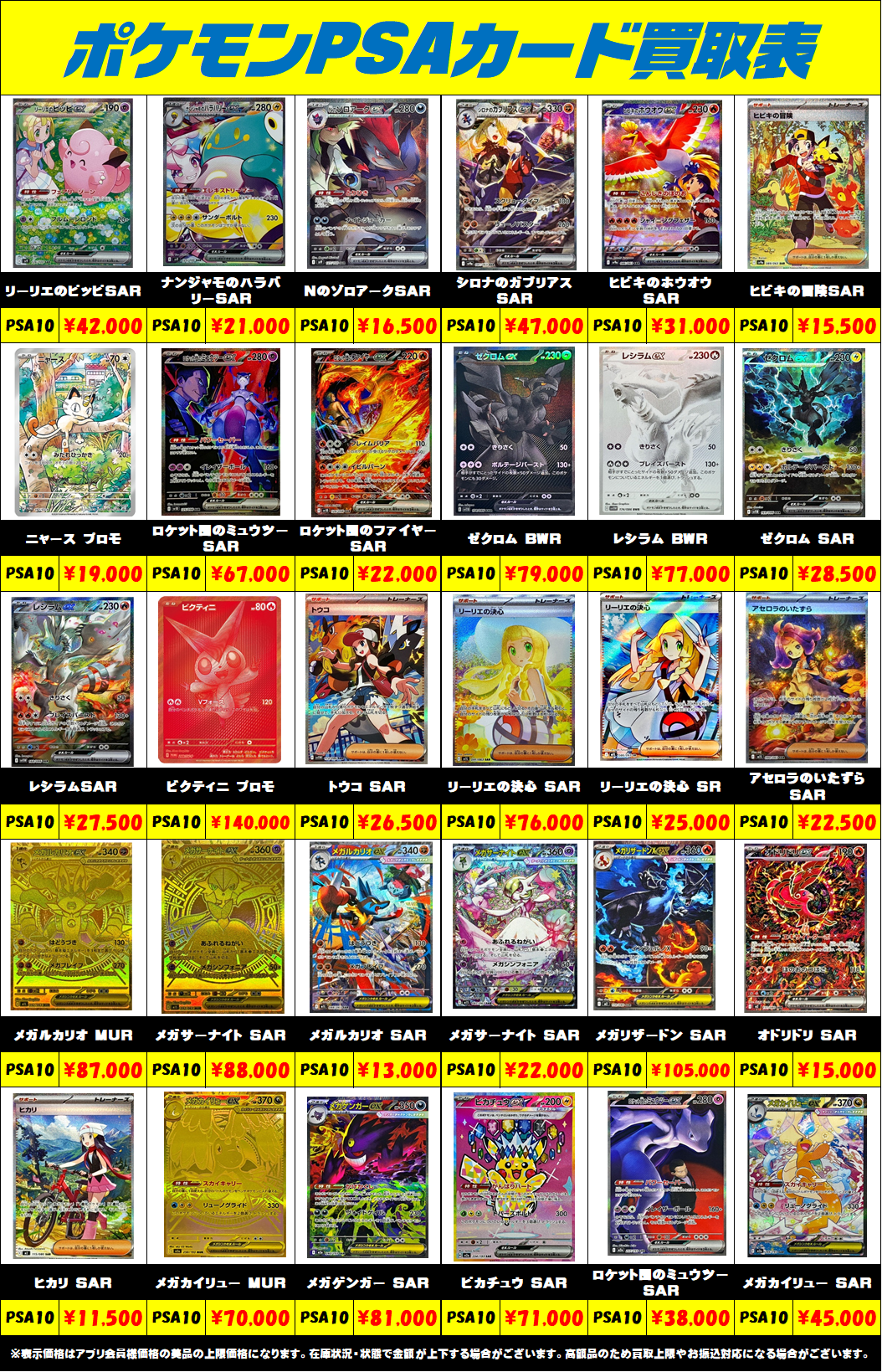※表示価格はアプリ会員様・店頭買取の美品の上限価格になります。 相場の変動が激しい為、在庫状況・状態・相場等で金額が予告なく大きく変動する場合がございます。PSAは、おひとり様最大で1日20万円までのお買取りになります。