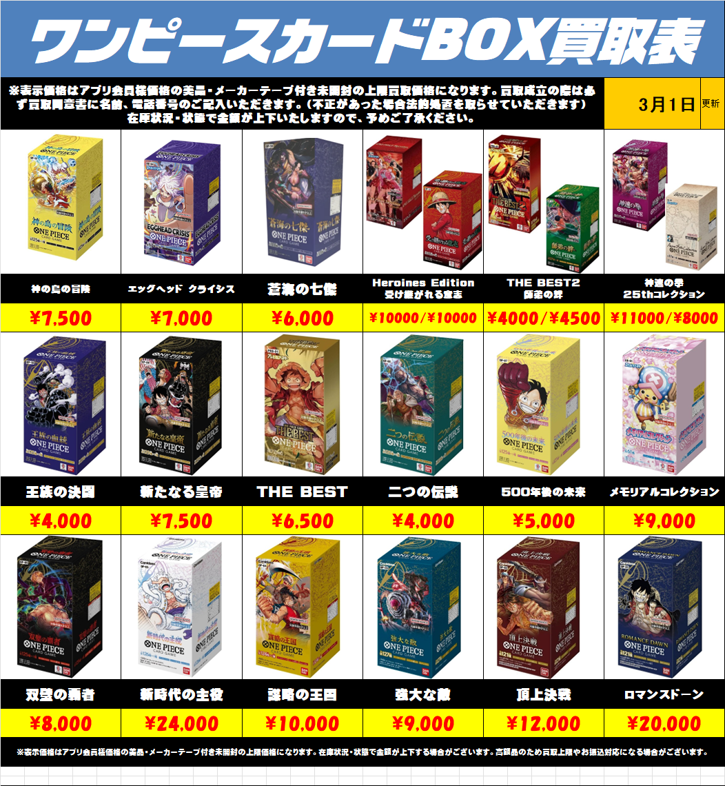 ワンピースカードBOX買取更新しました!!3/1