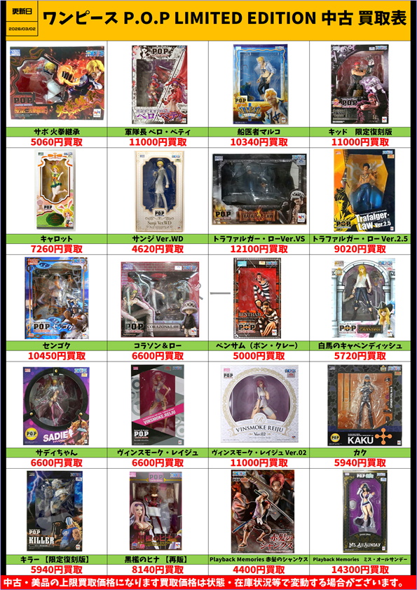 ワンピース P.O.P LIMITED EDITION playback memories シリーズ 中古 買取表更新しました!3/2~