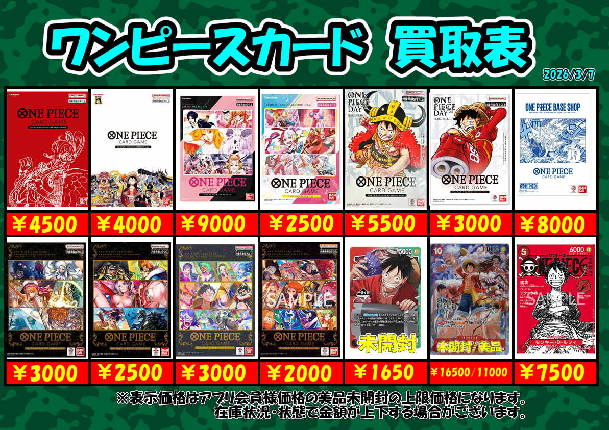 ワンピースカード買取更新しました!