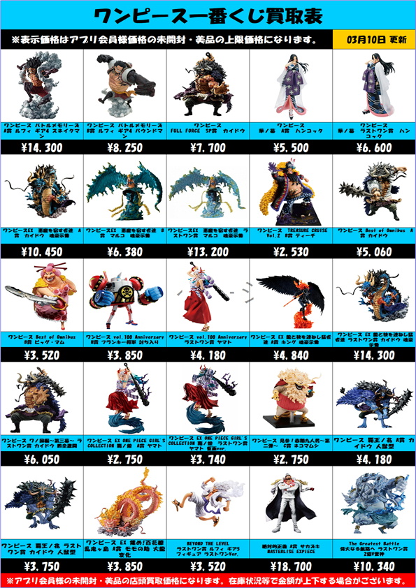 | 一番くじ ワンピース EX 龍と袂を連ねし猛者達 ラストワン賞 カイドウ 魂豪示像 メタリックカラーver. | 14300 |