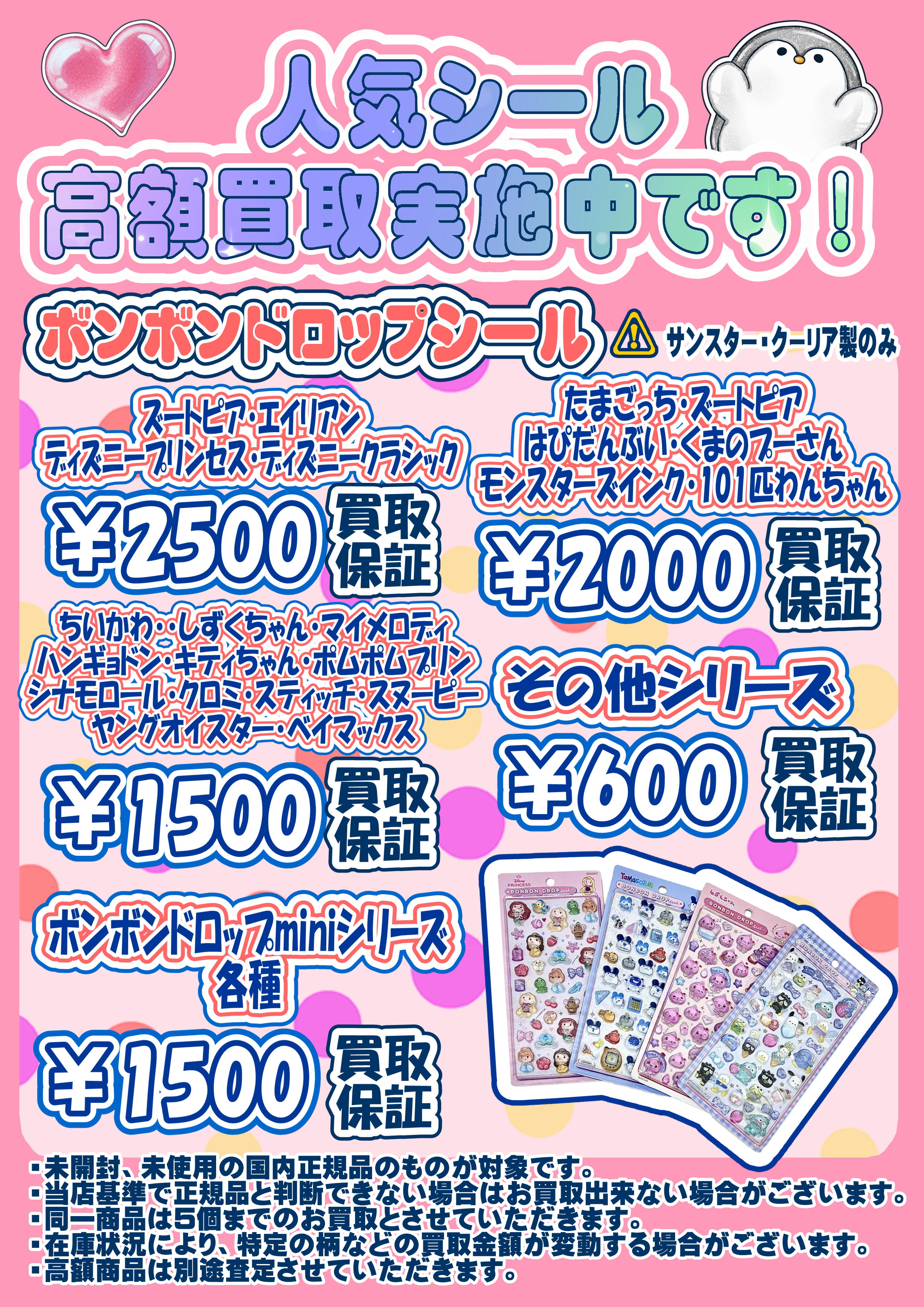 ・在庫状況により、特定の柄などの買取金額が変動する場合がございます。