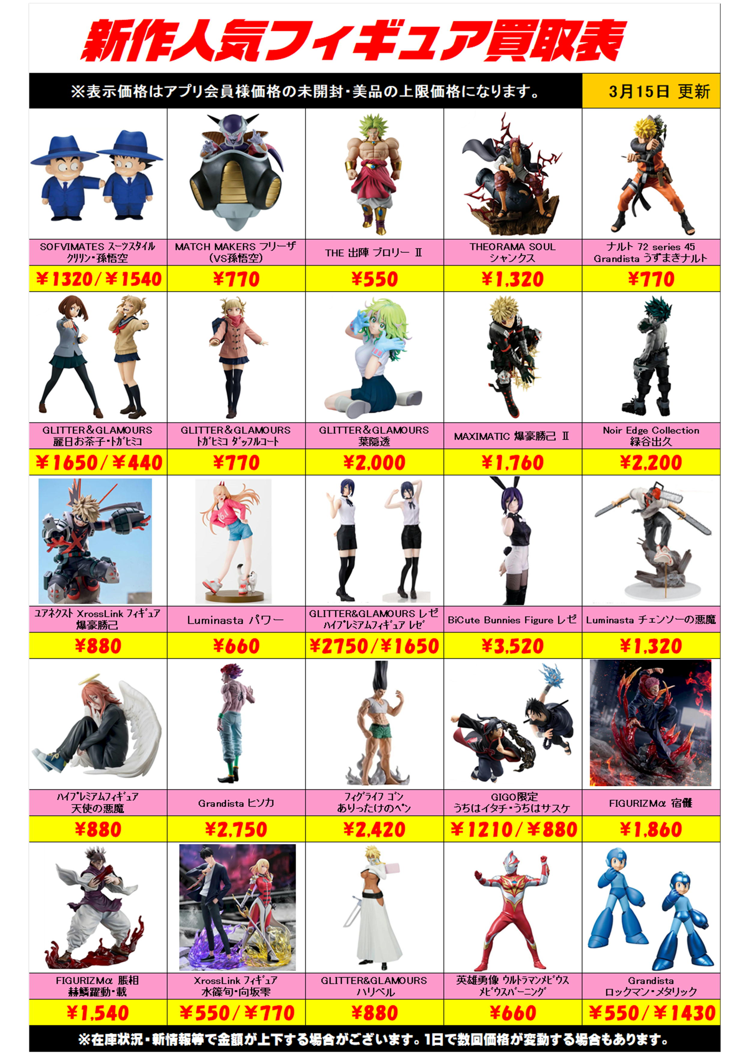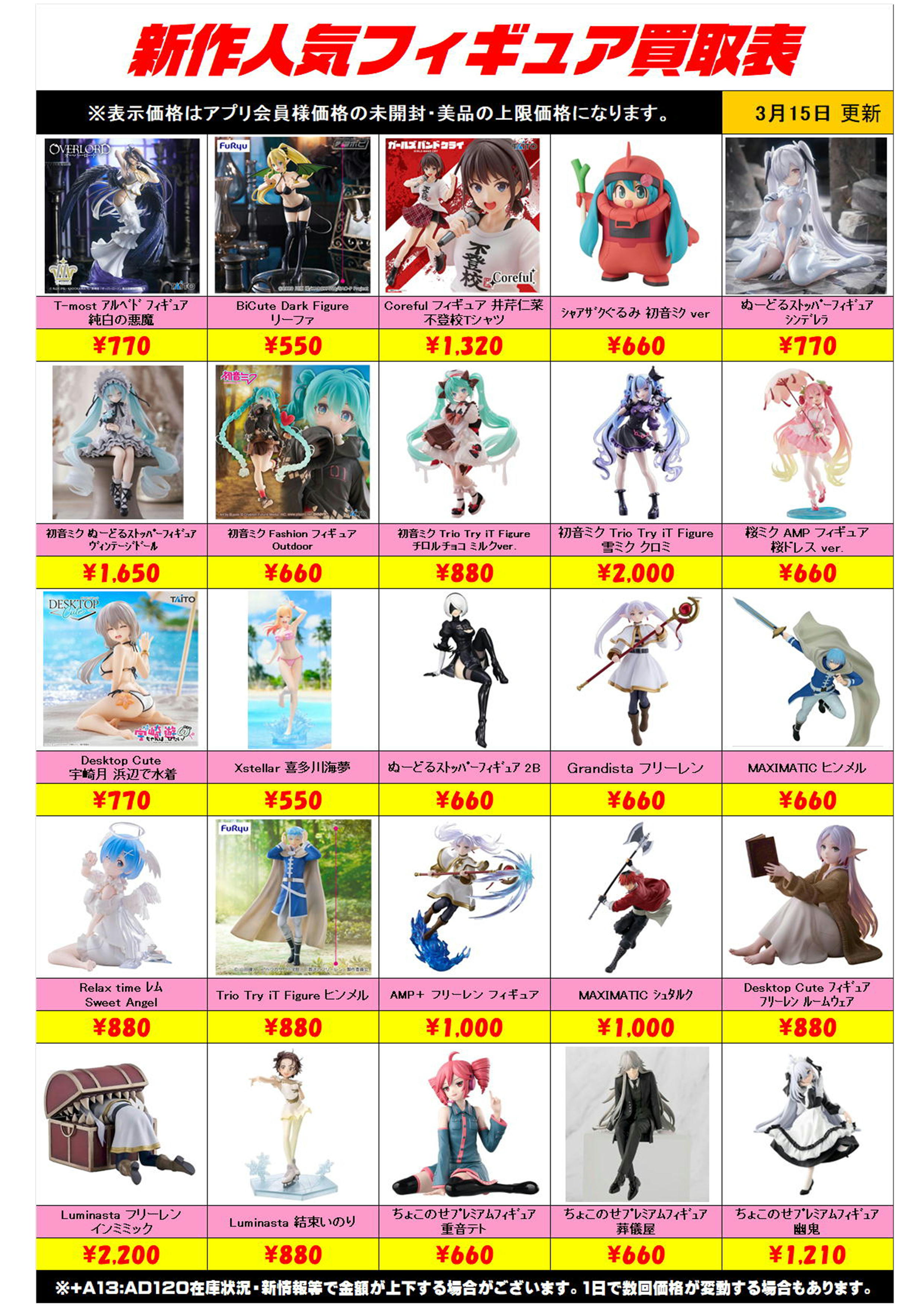 新作プライズフィギュア買取リスト更新しました! 3/15~