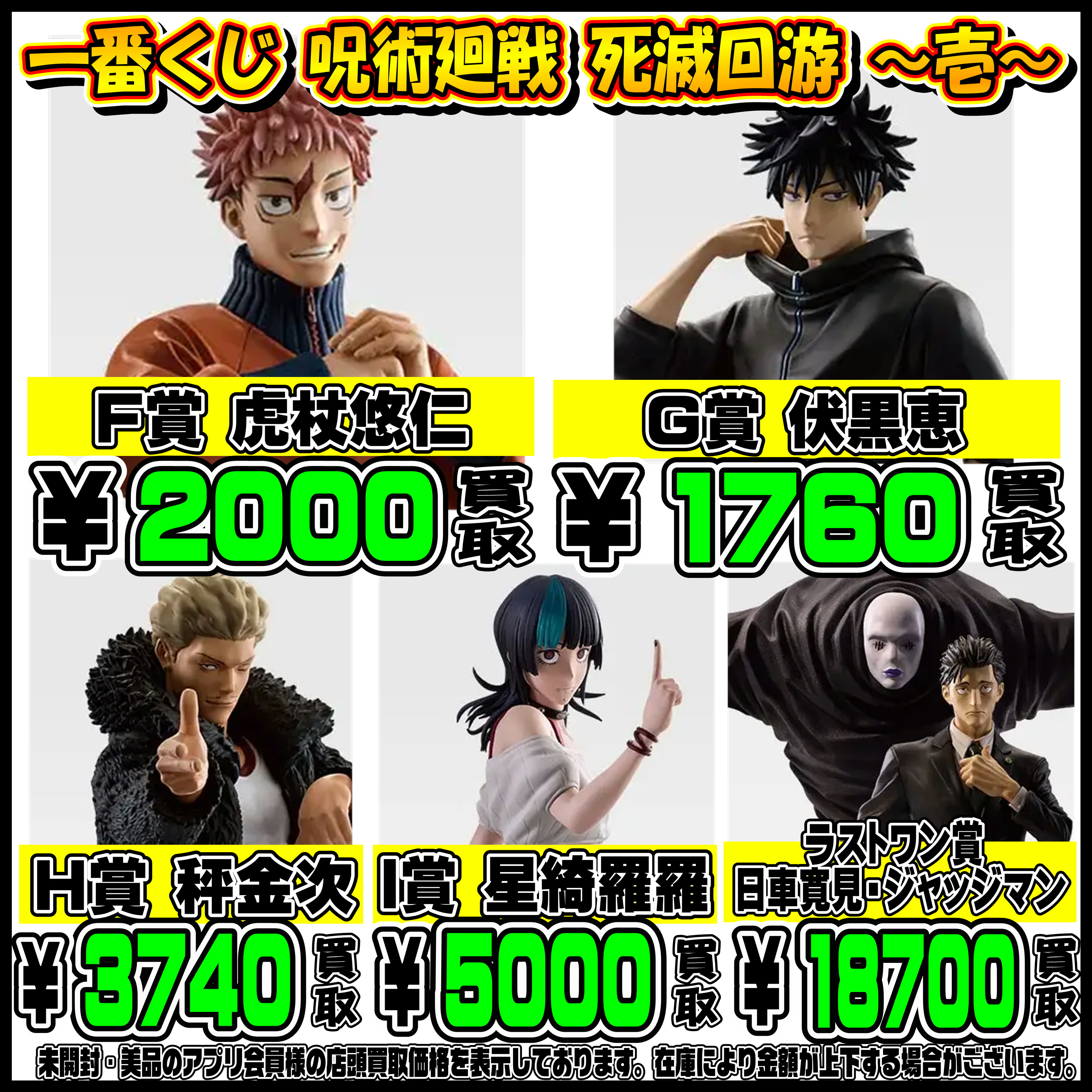 新作一番くじ買取リスト更新しました! 3/22 ウマ娘・ワンピース・ゴジラ・呪術廻戦 など