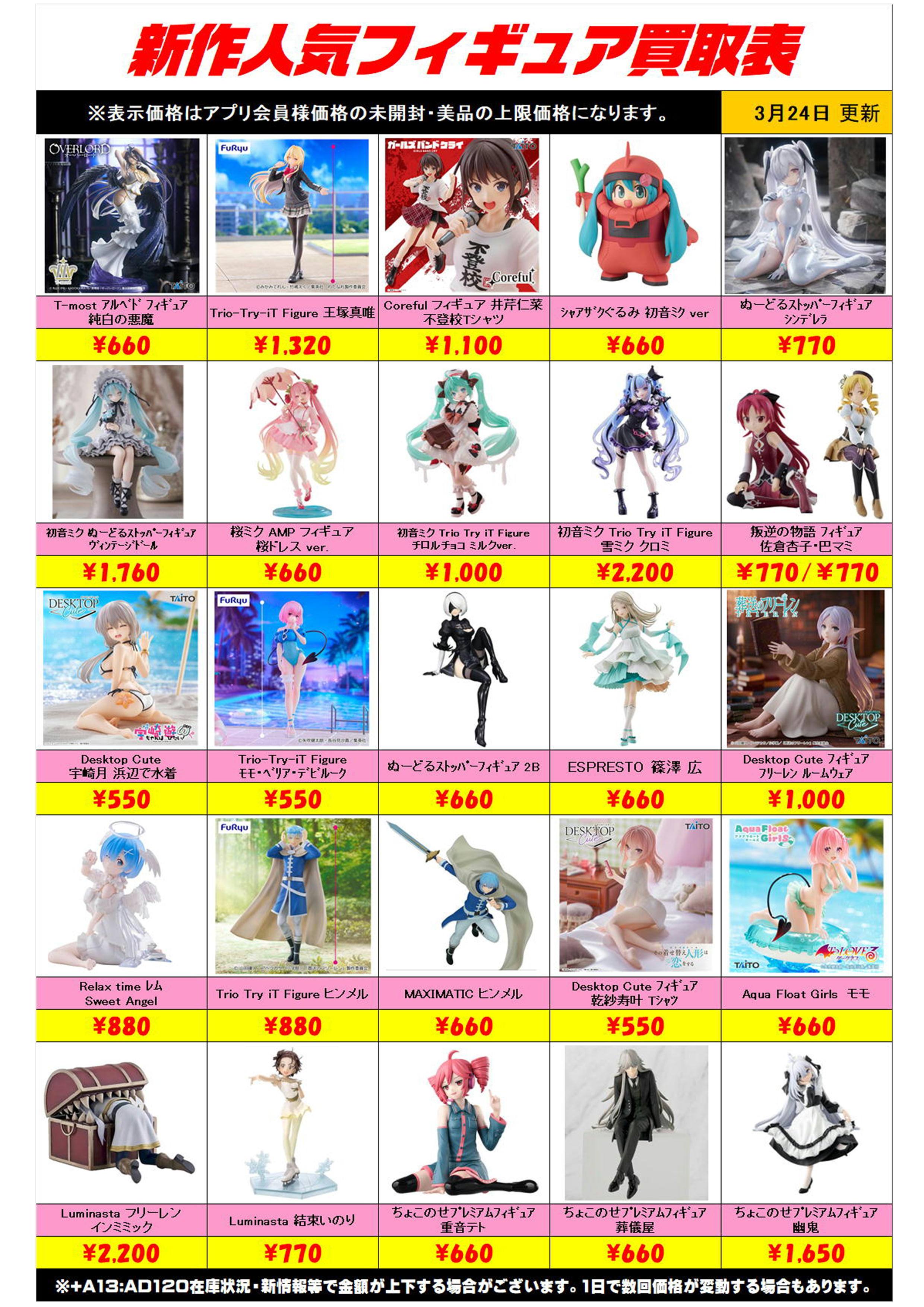 新作プライズフィギュア買取リスト更新しました! 3/24~ プラスアップキャンペーンも実施中です!
