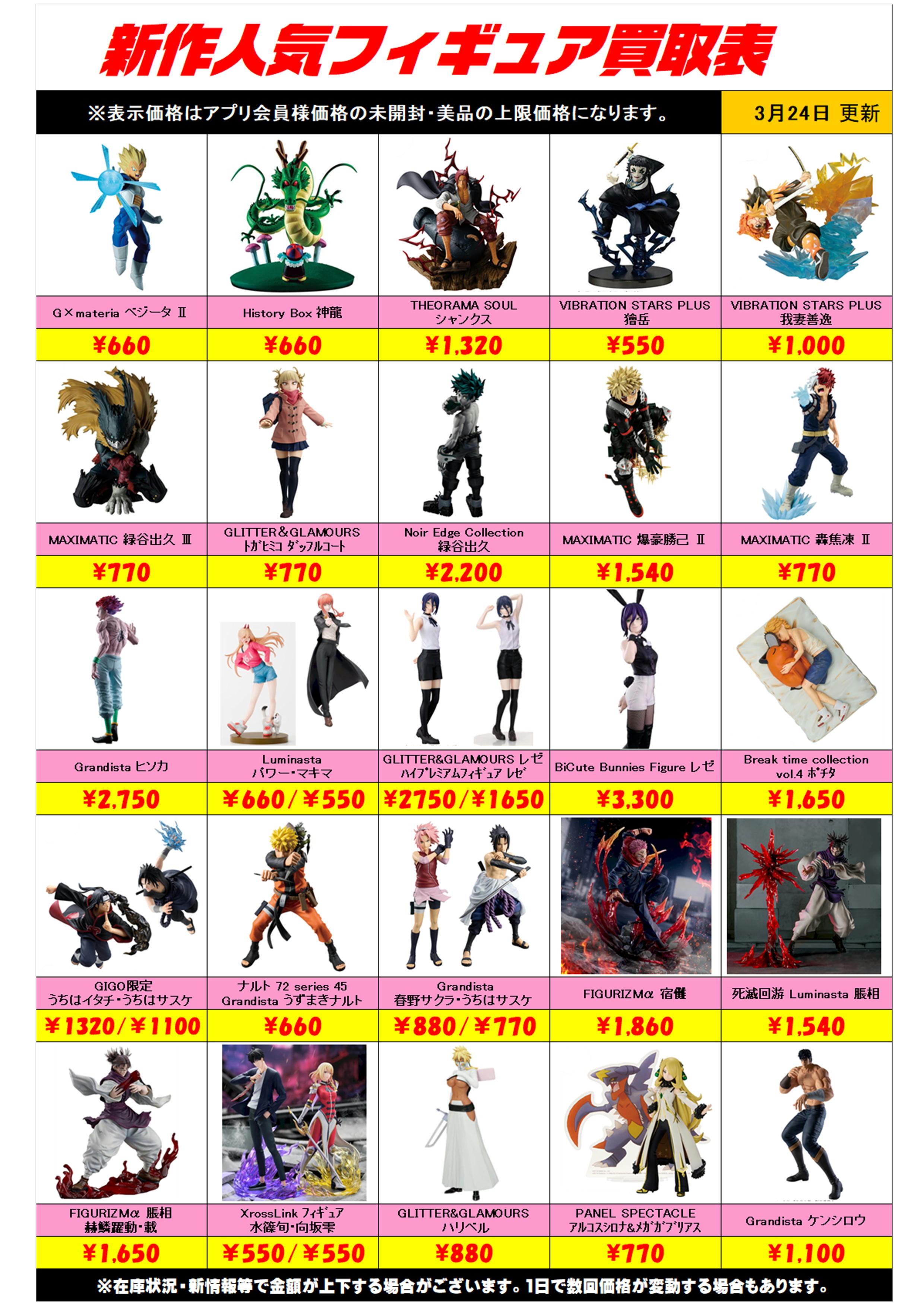 新作プライズフィギュア買取表更新しました! 1/28