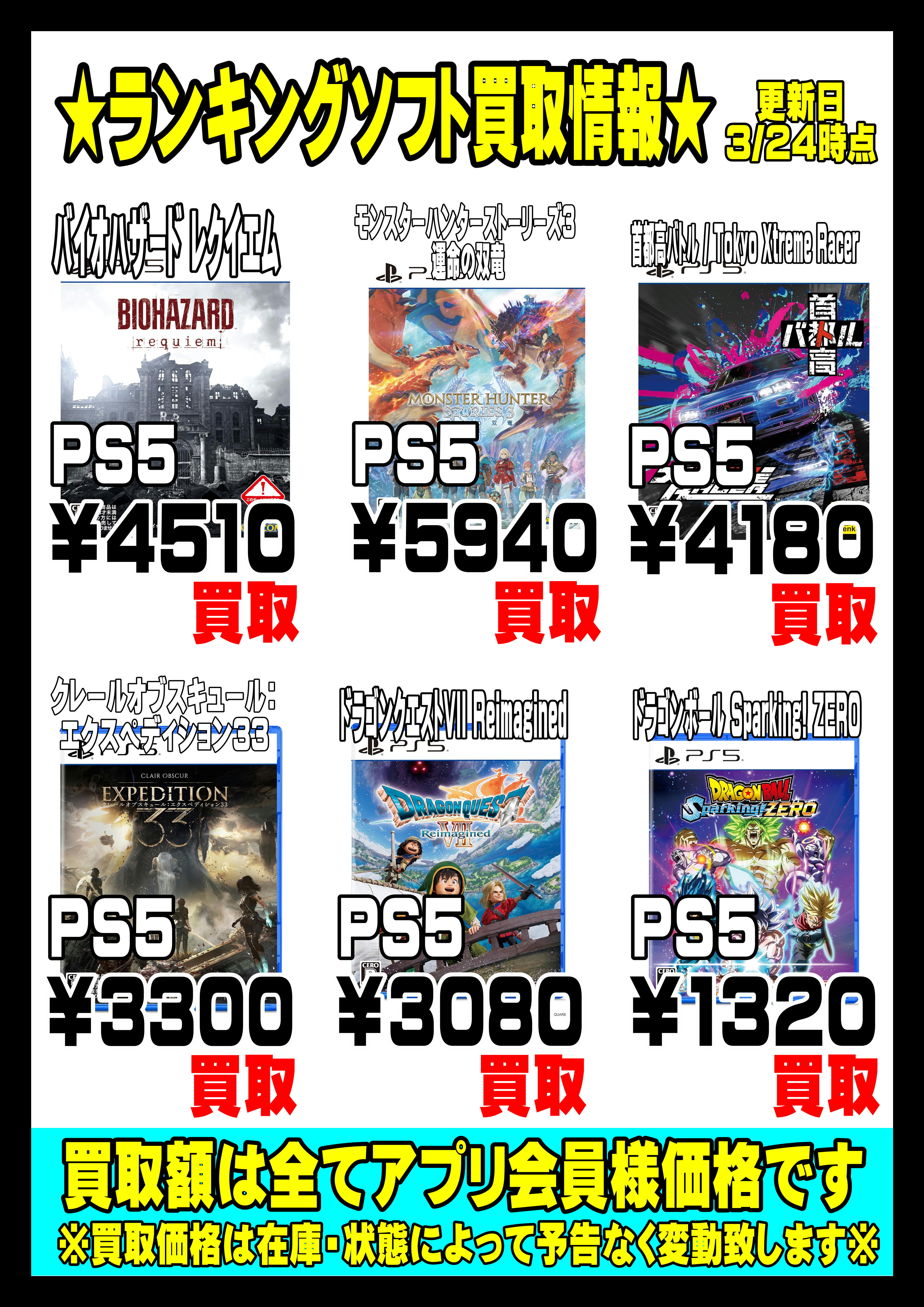 ★週間ゲームソフトランキングPS5強化買取情報!!!!!★3/24現在