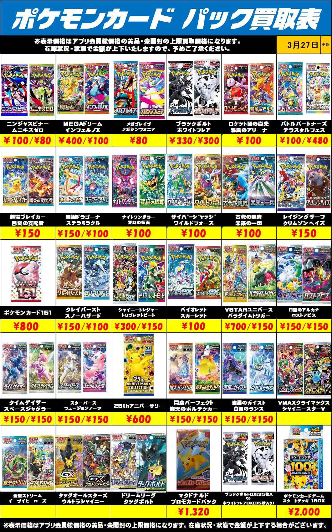 ポケモンカード新弾ニンジャスピナーBOX・パック買取リスト更新しました! 3/13~