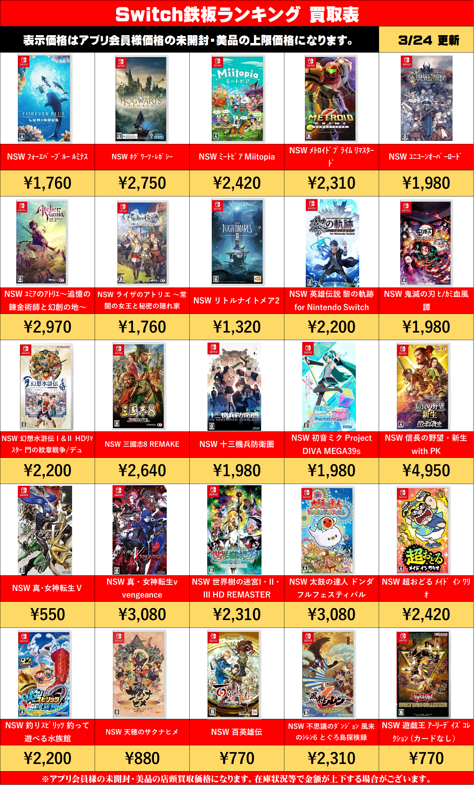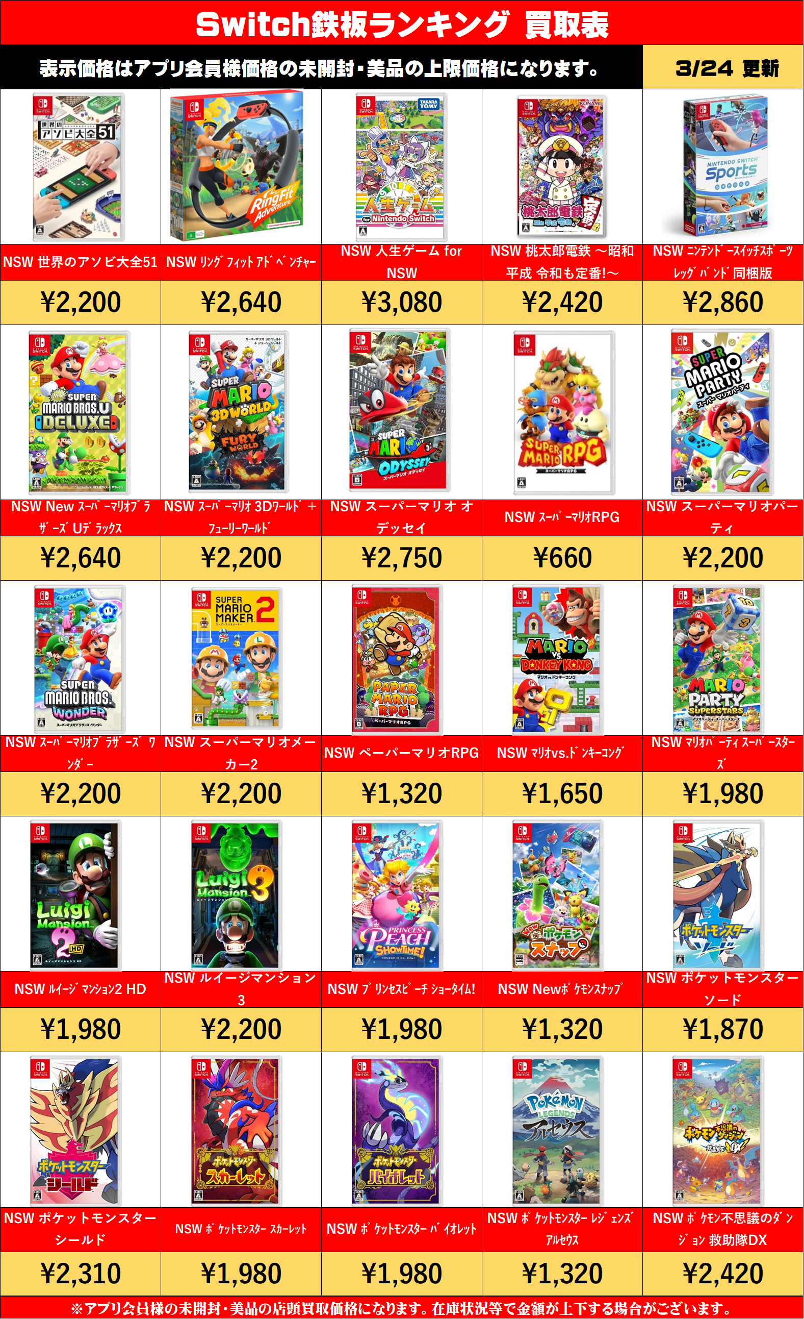 NSW 未使用 中古品 NSW 有機EL版 ネオン/ホワイト 33,000 23,000 NSW 有機EL版 マリオレッド 32,000 23,000 NSW 有機EL版 マイニンテンドー 28,0 …