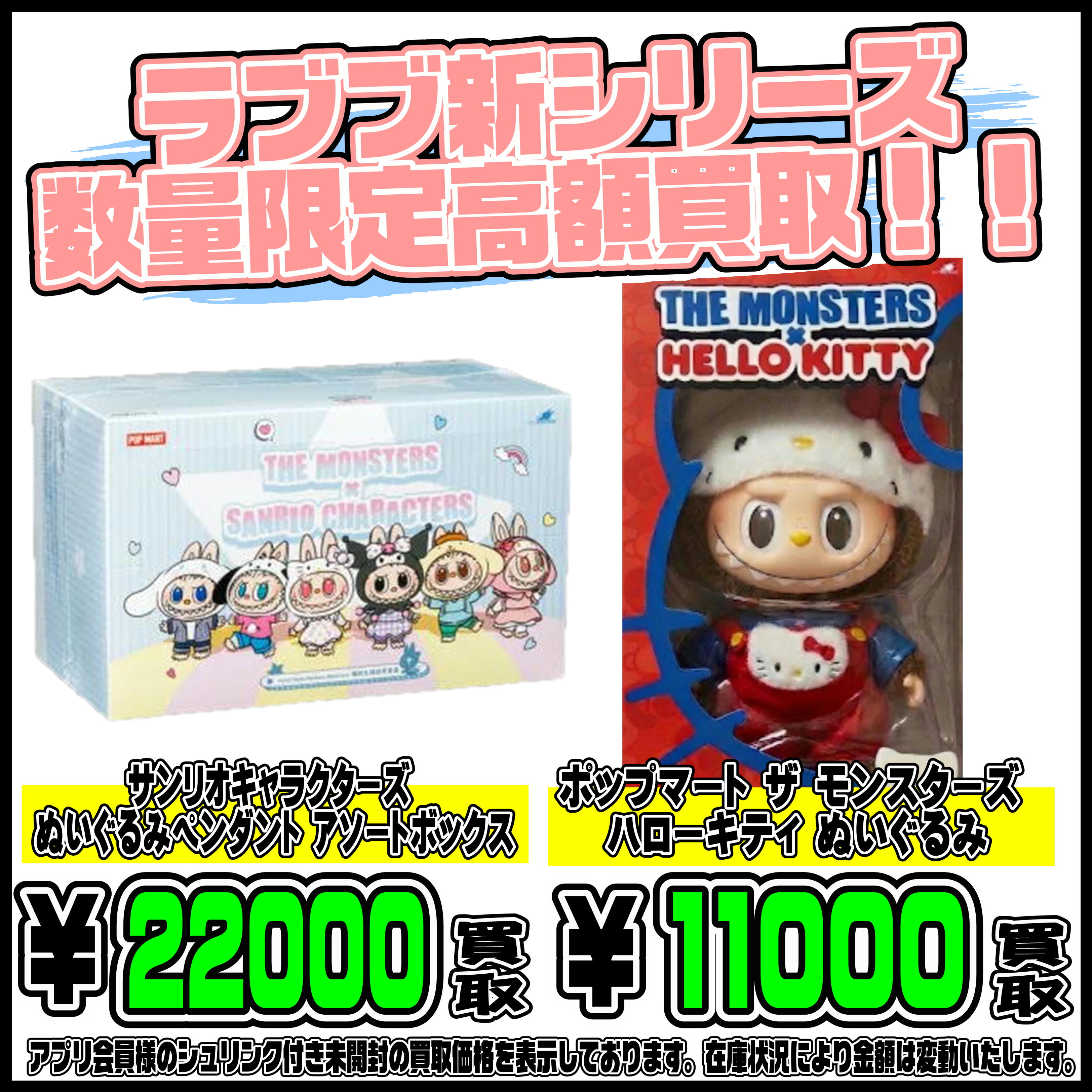 また、在庫状況・状態・欠品などでの金額が変動や、買取上限がございます。予めご了承ください。
