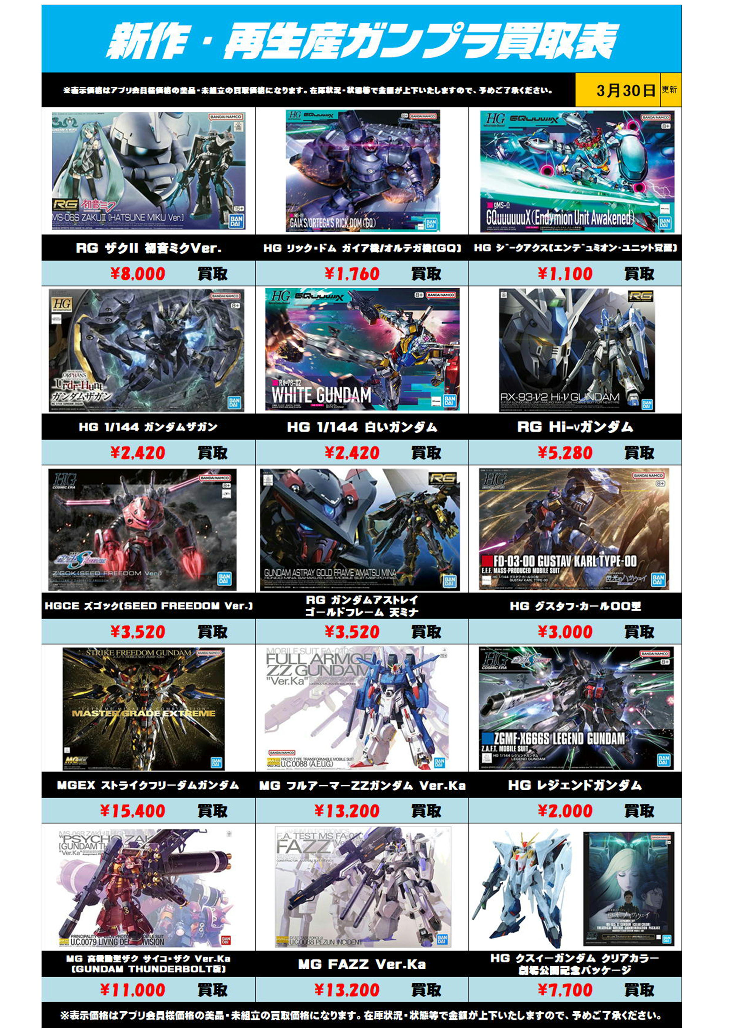 | 新作・再販ガンプラ買取表 | 買取金額 |