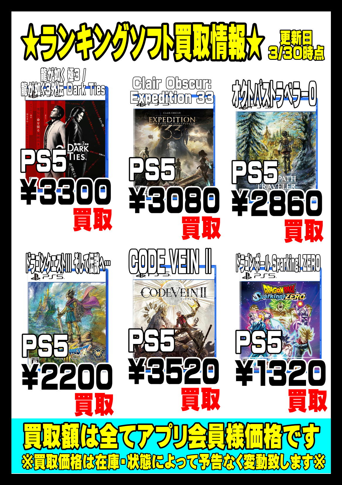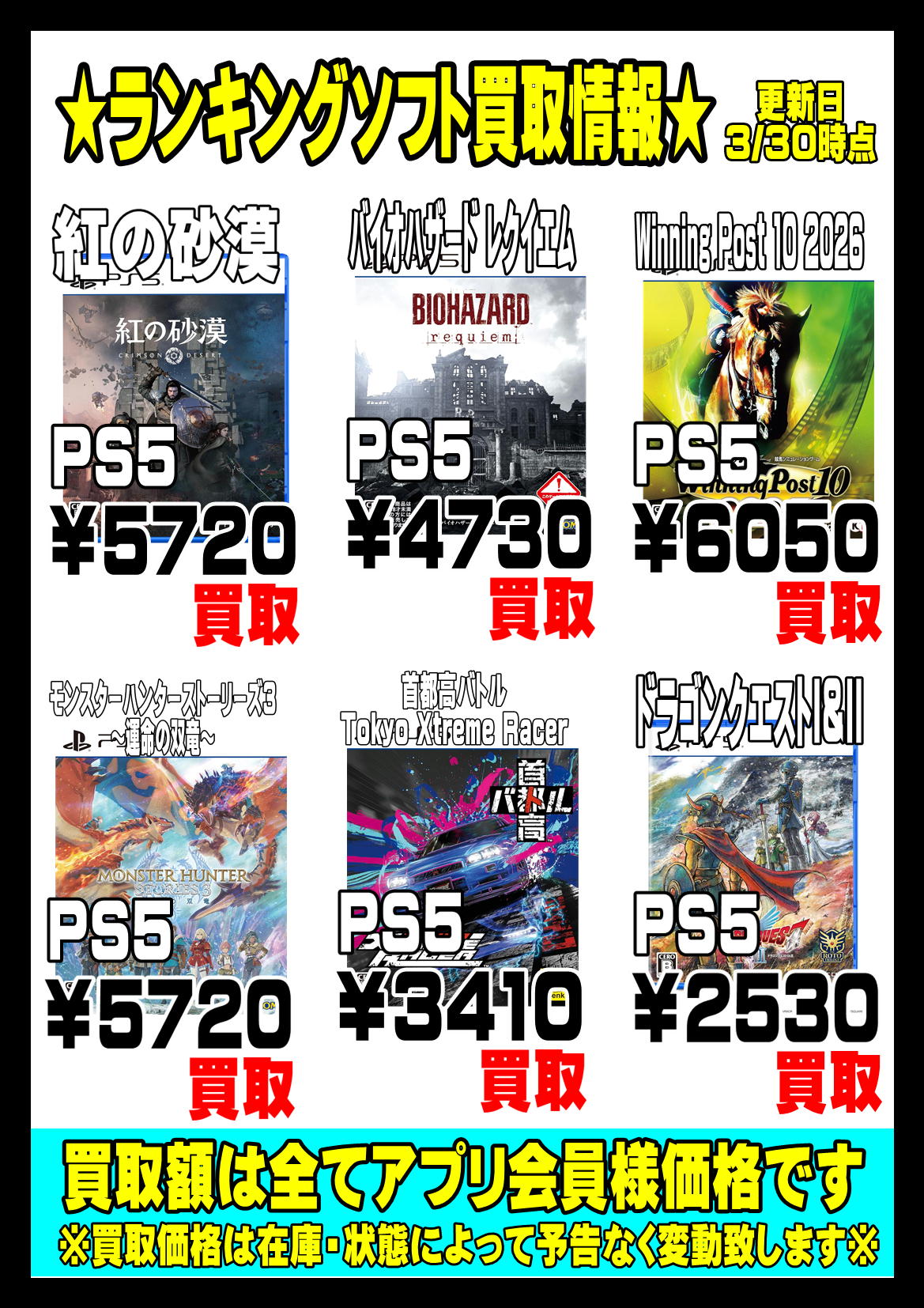 | ソフト名 | 会員買取価格 |