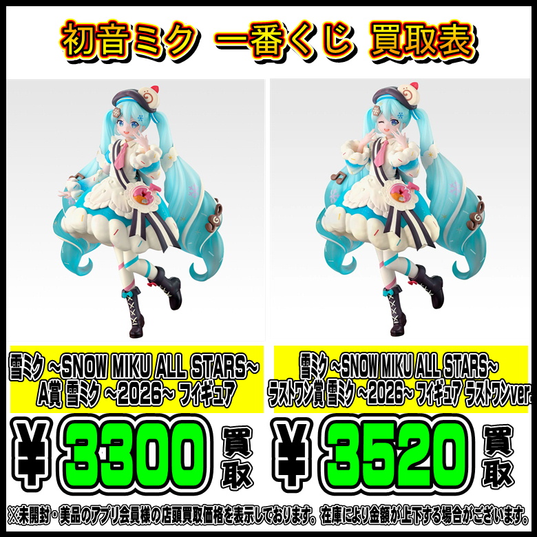 | 一番くじ 雪ミク ~SNOW MIKU ALL STARS~ A賞 雪ミク ~2026~ フィギュア | 3300 |