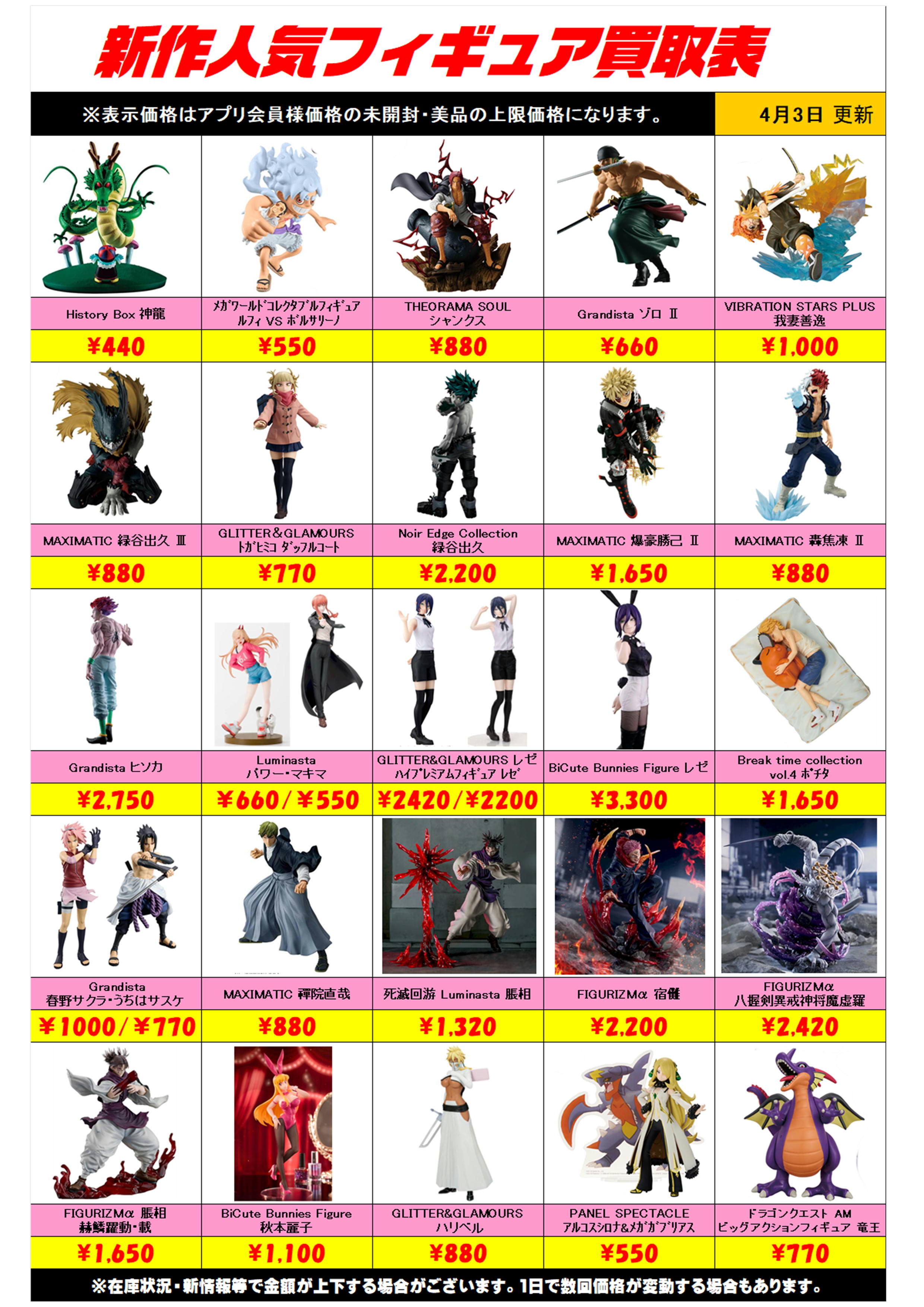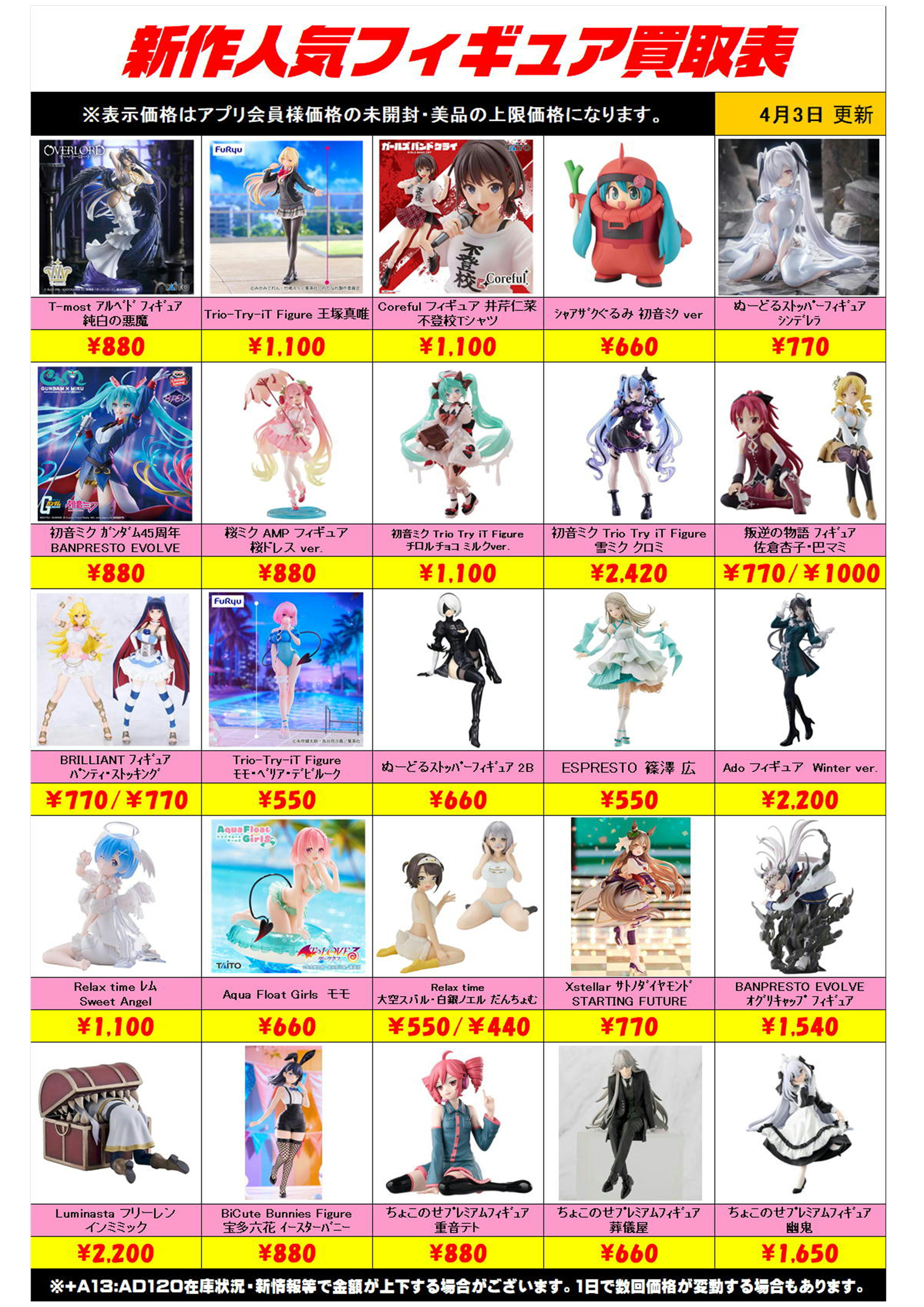 新作プライズフィギュア買取リスト更新しました! 4/3~ プラスアップキャンペーンも実施中です!