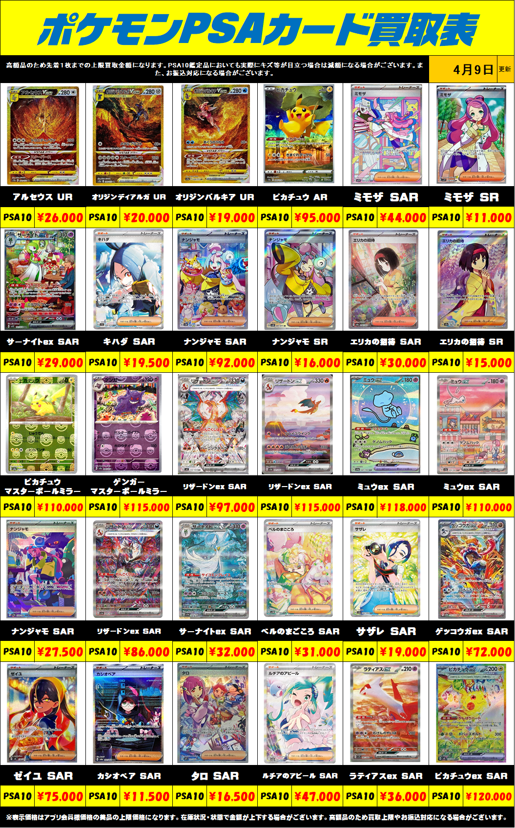 ※表示価格はアプリ会員様・店頭買取の美品の上限価格になります。 相場の変動が激しい為、在庫状況・状態・相場等で金額が予告なく大きく変動する場合がございます。PSAは、おひとり様最大で1日20万円までのお買取りになります。