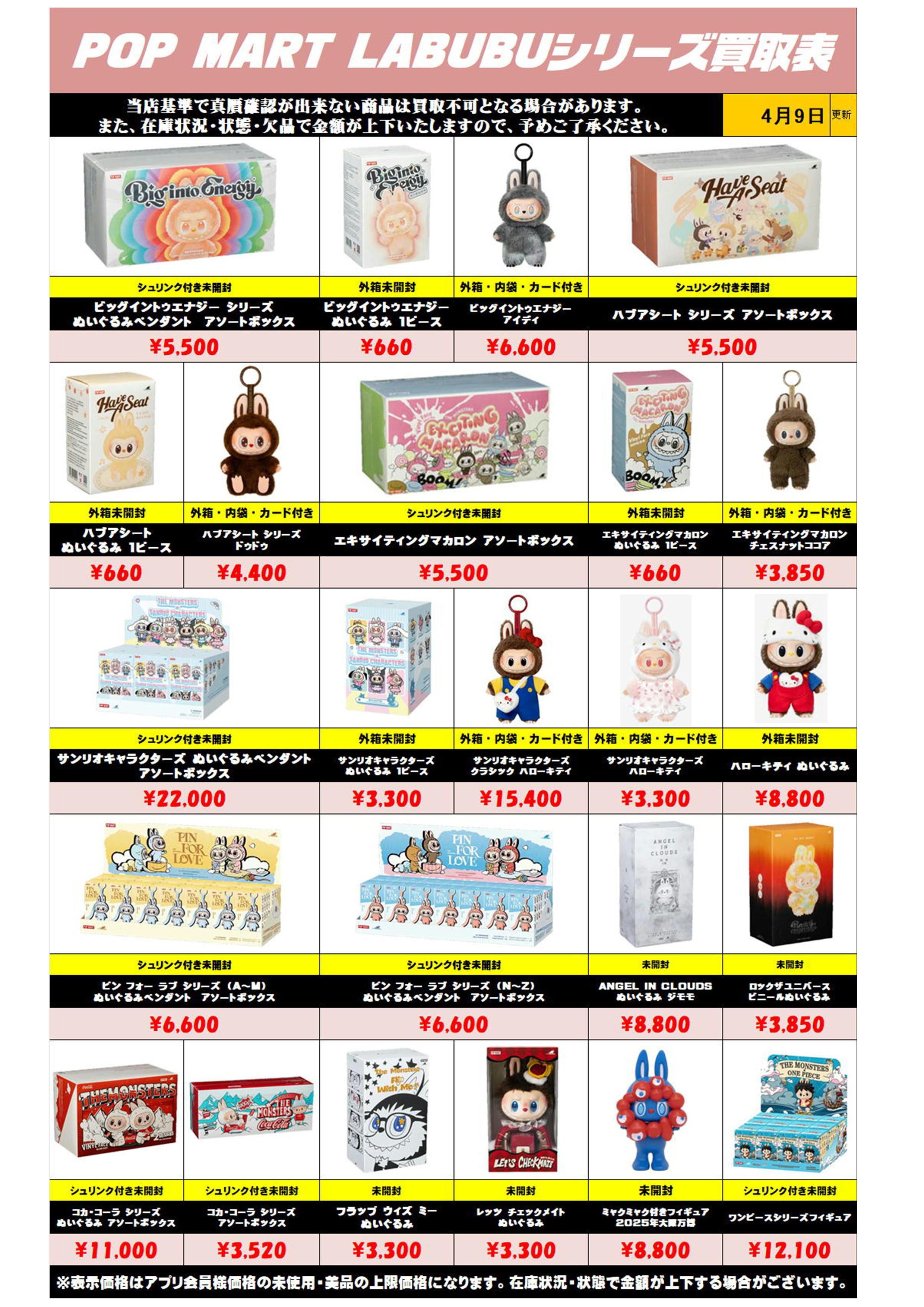 ラブブシリーズ 買取リスト更新しました! 4/9~