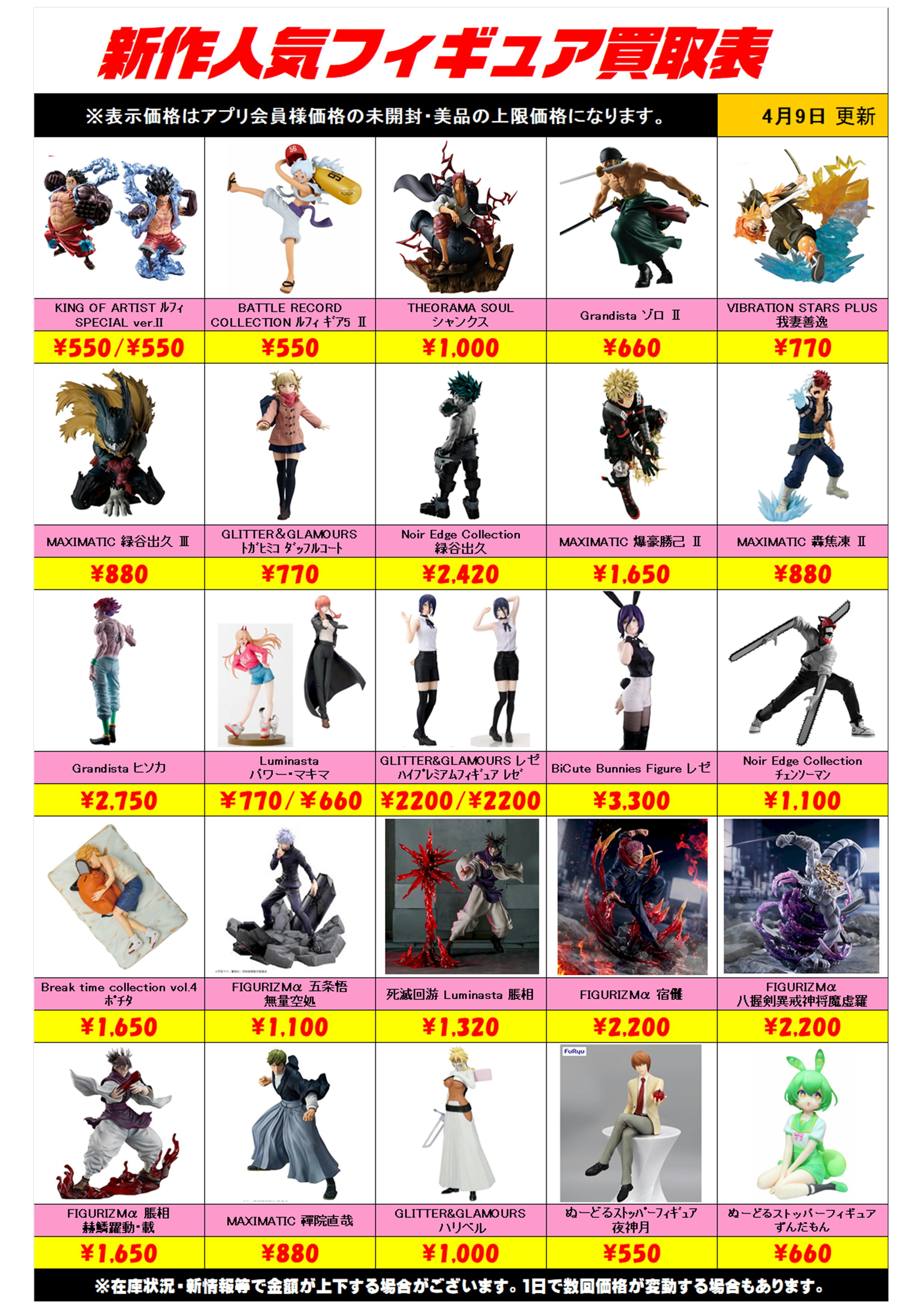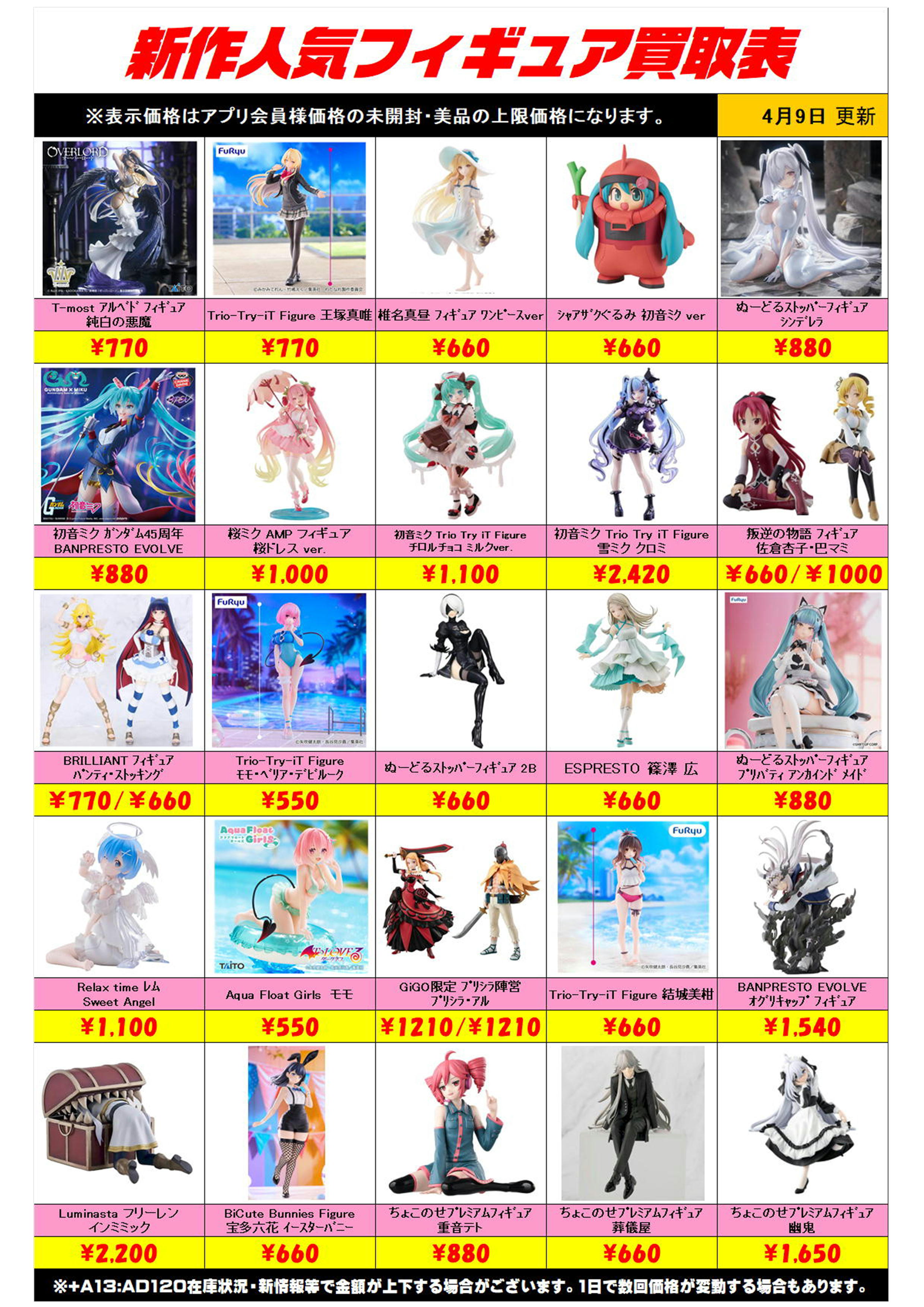 新作プライズフィギュア買取リスト更新しました! 4/9~ プラスアップキャンペーンも実施中です!