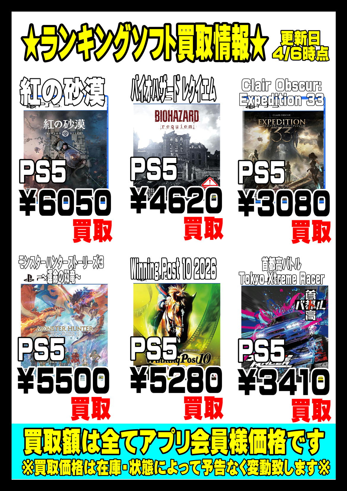 | ソフト名 | 会員買取価格 |