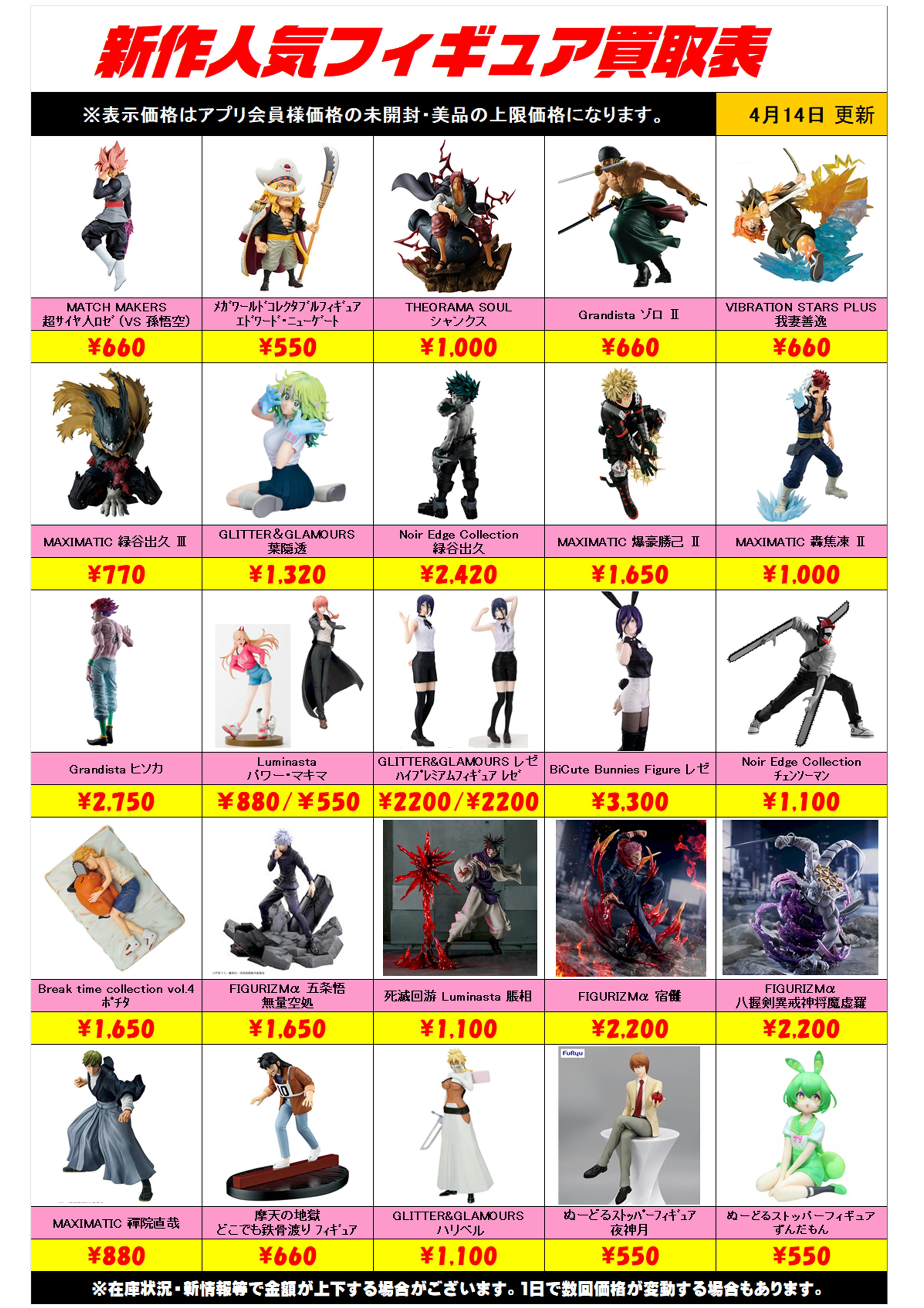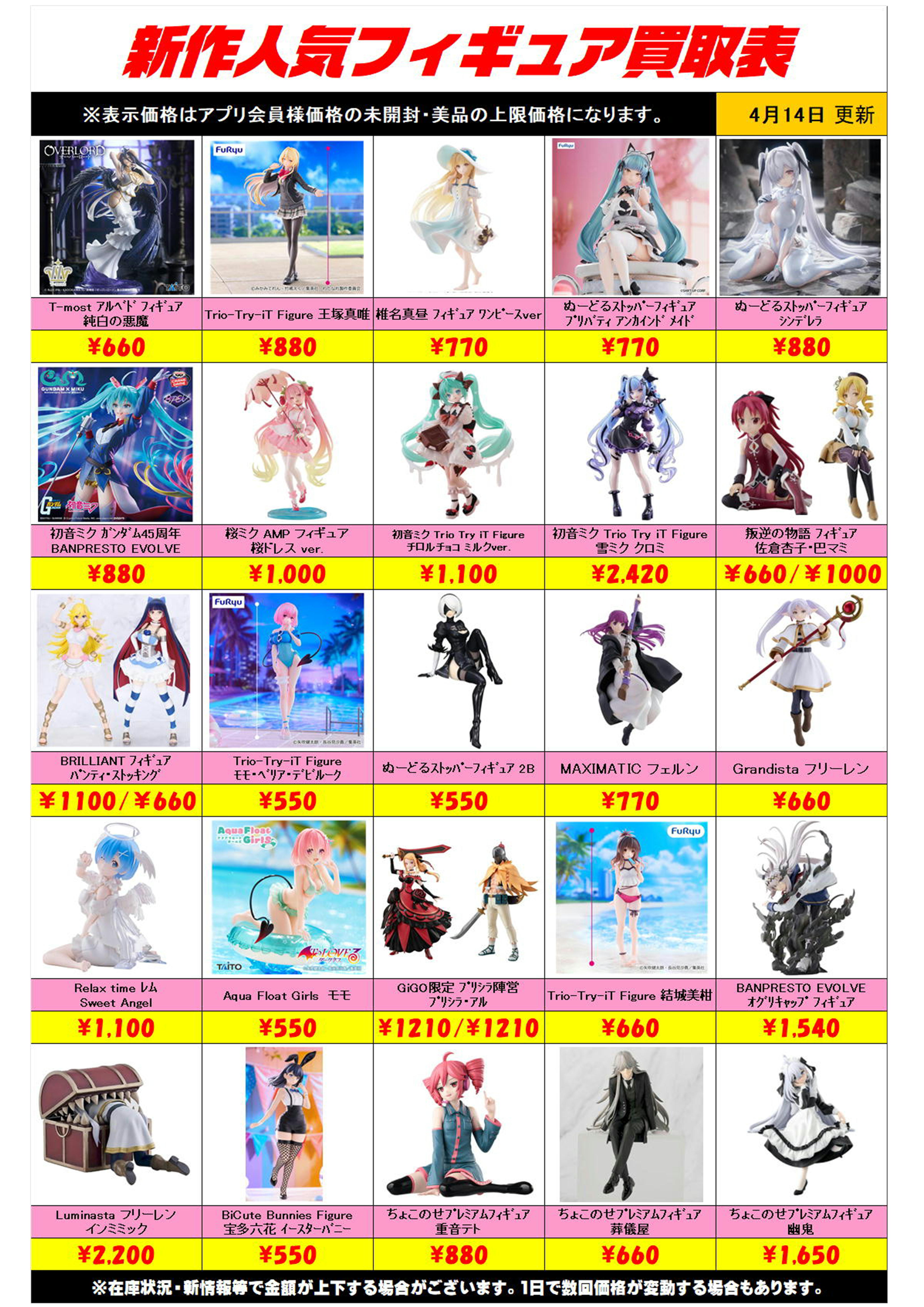 新作プライズフィギュア買取リスト更新しました! 4/14~ プラスアップキャンペーンも実施中です!