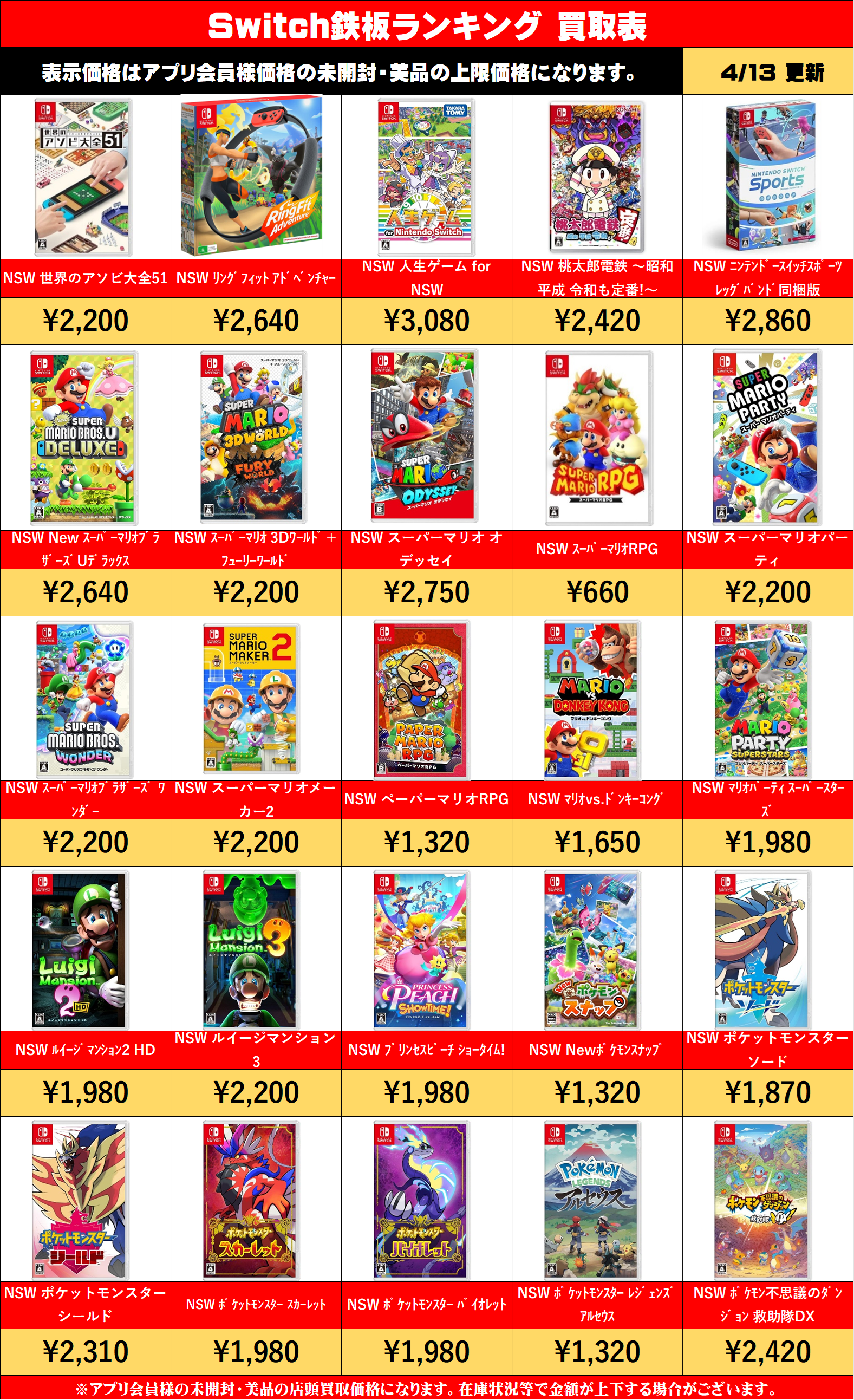 switch本体価格一覧 未使用 中古品 switch switch本体 有機ELモデル ネオン 各色 34000 15000 switch本体 有機ELモデル ホワイト 34000 15000 sw …