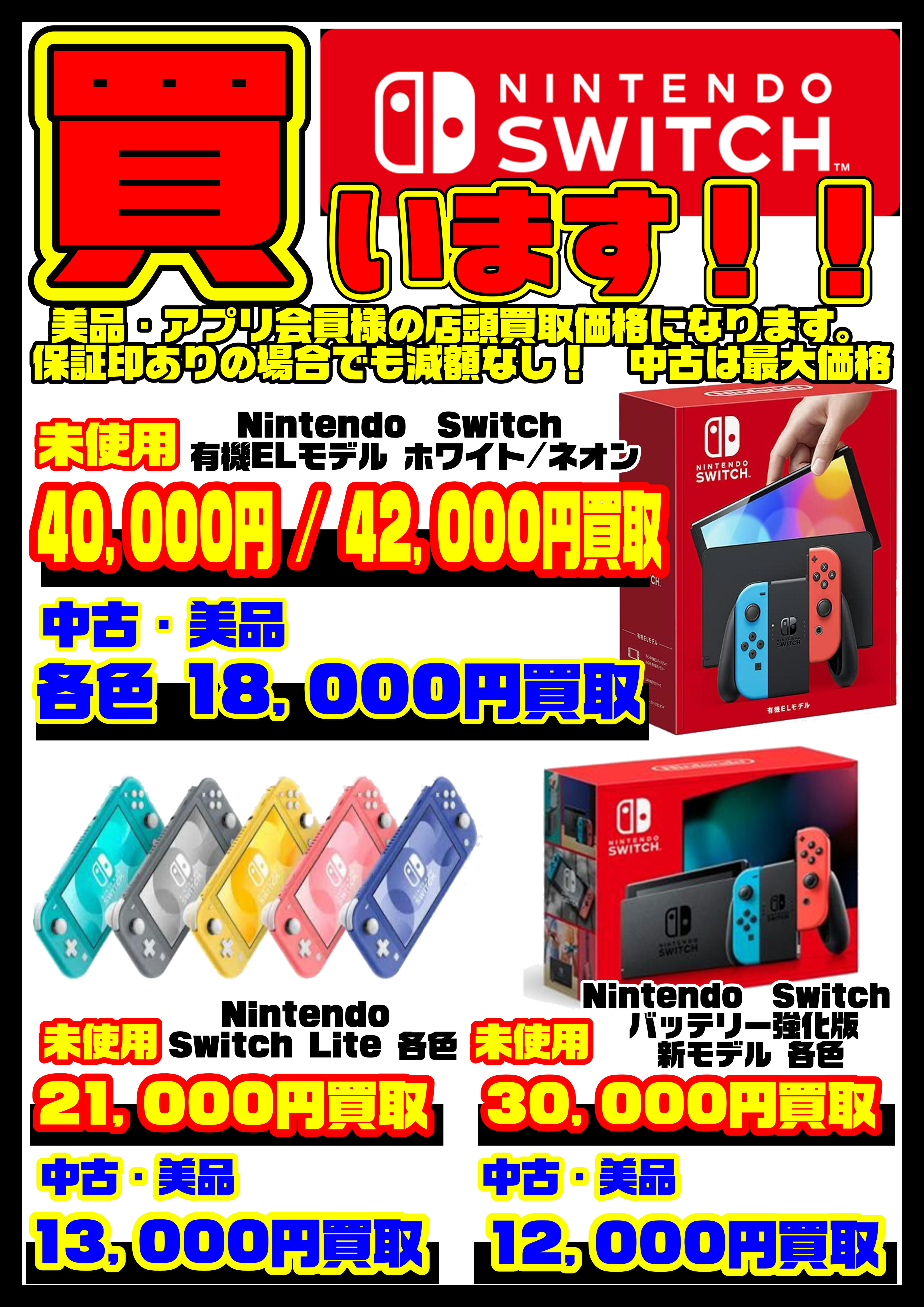 NSW 未使用 中古品 NSW 有機EL版 ネオン 39,000 26,000 NSW 有機EL版 ホワイト 37,000 25,000 NSW 有機EL版 マイニンテンドー 30,000 23,5 …